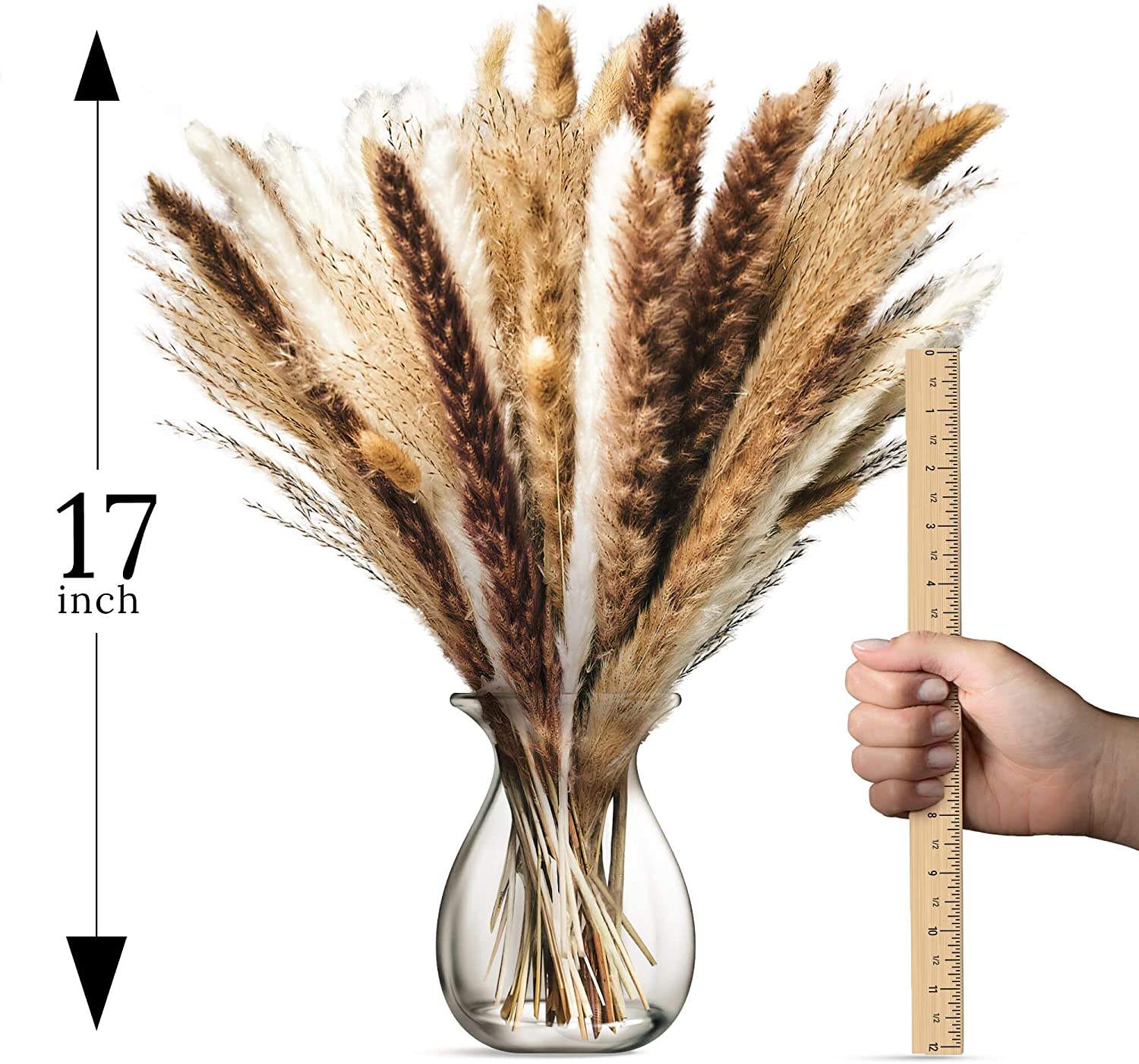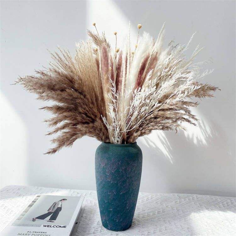 Essential details Place of Origin: Zhejiang, China Brand Name: Zhuoou Occasion: Other Size: 17 inch Material: plastic Product Name: pampas grass set material: natural pampas grass Color: white and natural color MOQ: 50 box total size with stem: 17inch Packing: inner box Sample: Available(5-7 Days) Feature: full, plump Use: home and wedding decoration