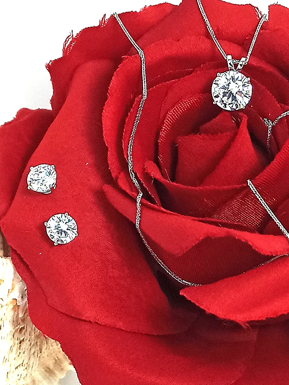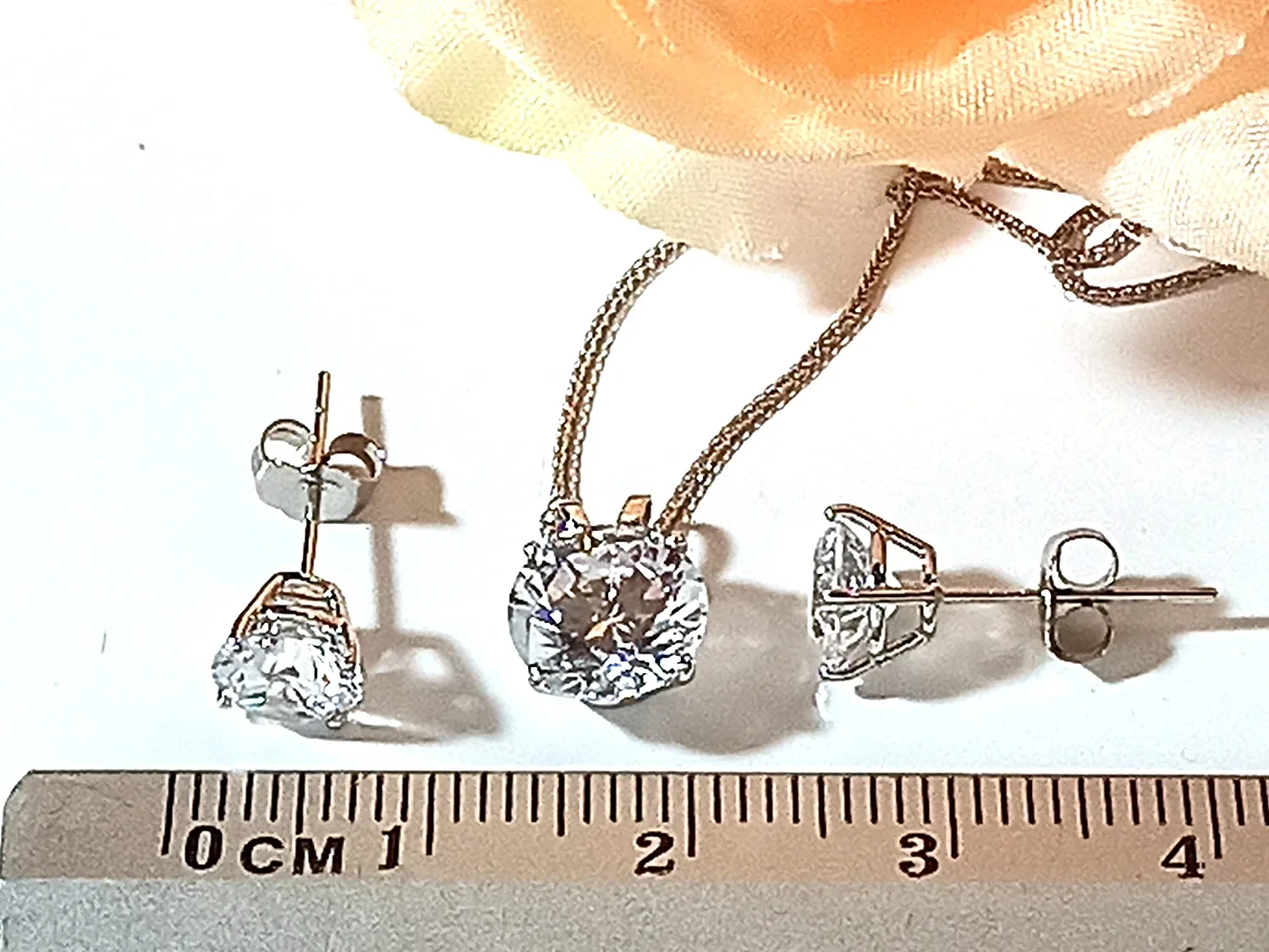 3.5ctw SOLID White gold 18kt HANDMADE LUXURY DESIGNER DIAMOND SET Jewelry ?? ??2ct SOLITAIRE lab DIAMOND EARRINGS 8mm ?? 1.5 carat SOLITAIRE lab DIAMOND NECKLACE 6mm