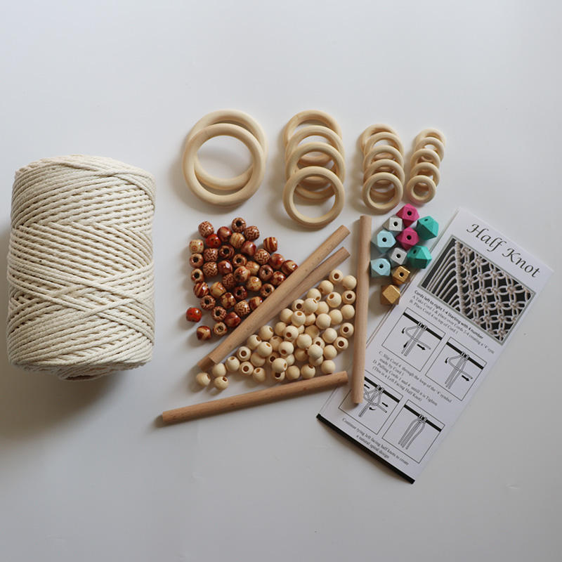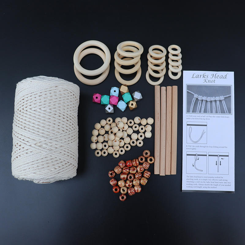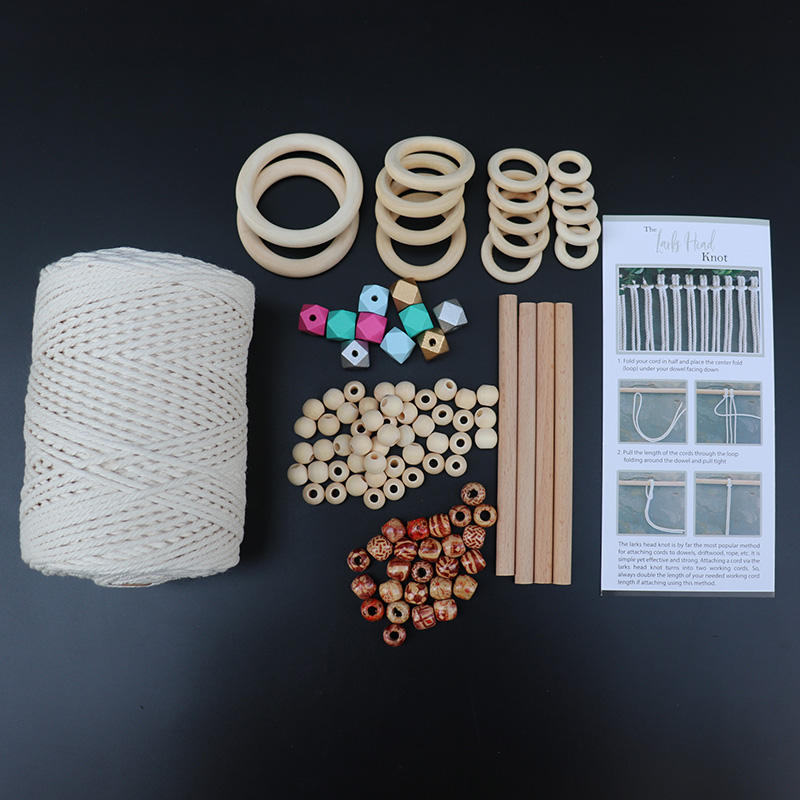 Essential details Type: Other Home Decor Occasion: Other Design Style: Other Place of Origin: Zhejiang, China Brand Name: MX Model Number: MK201027 Material: Wood and cotton Product Name: Natural cotton Macrame Kits Color: Customized Color Size: as picture MOQ: 2 sets Packing: Opp Bag Logo: Accept Customized Logo Sample time: 3-5 Days Weight: 0.85kg/set OEM: Wlecome Usage: Home Decorations.Gifts