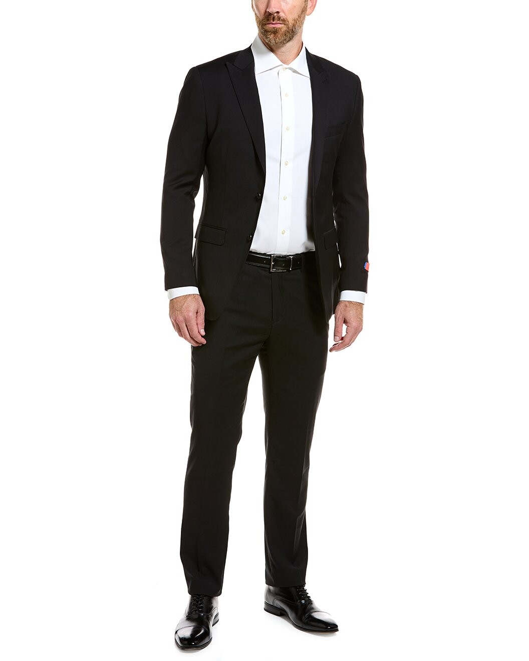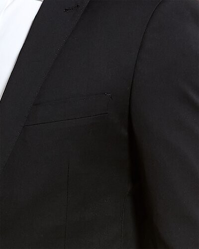 Design details: peak lapel, left chest pocket, two front pockets, non-functional button cuffs, four interior pockets, and side vents at back hem