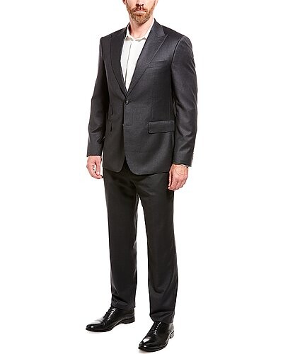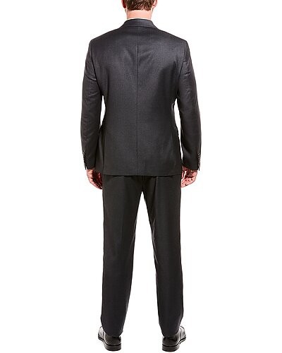 Design details: peak lapel, left chest pocket, three front pockets, non-functional buttons at cuffs, four interior pockets, and side vents at hem