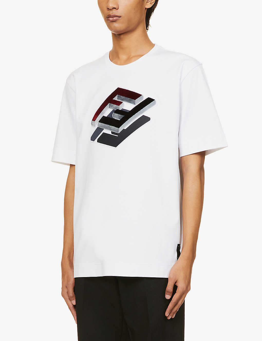 3D logo-embroidered short-sleeved cotton-jersey T-shirt