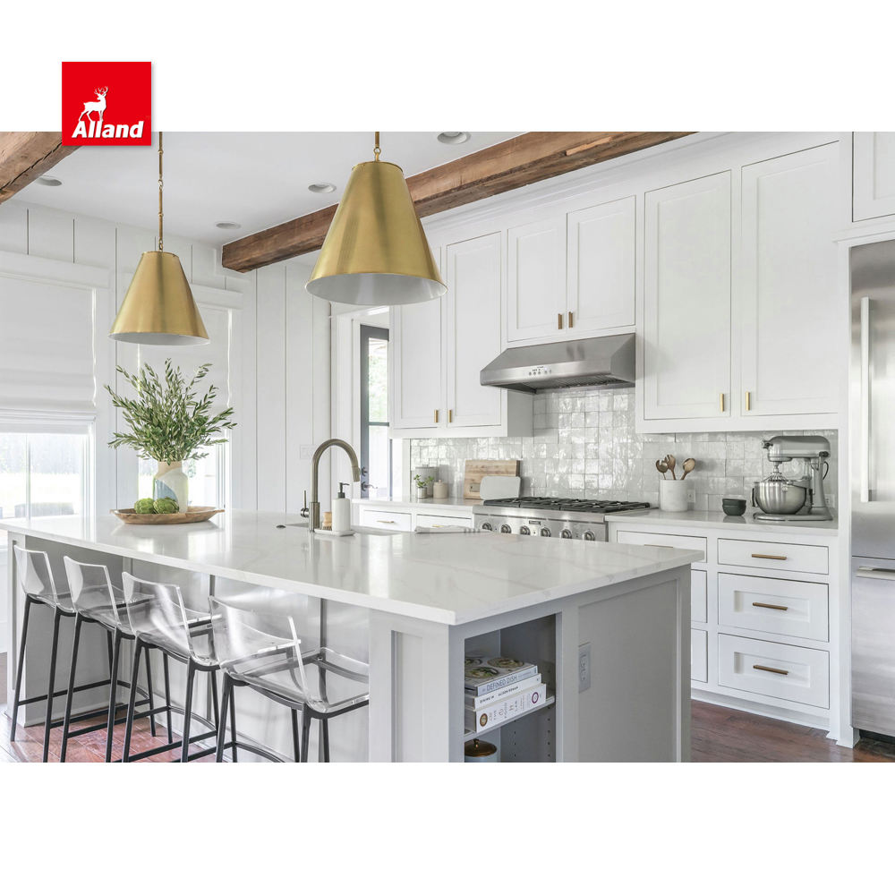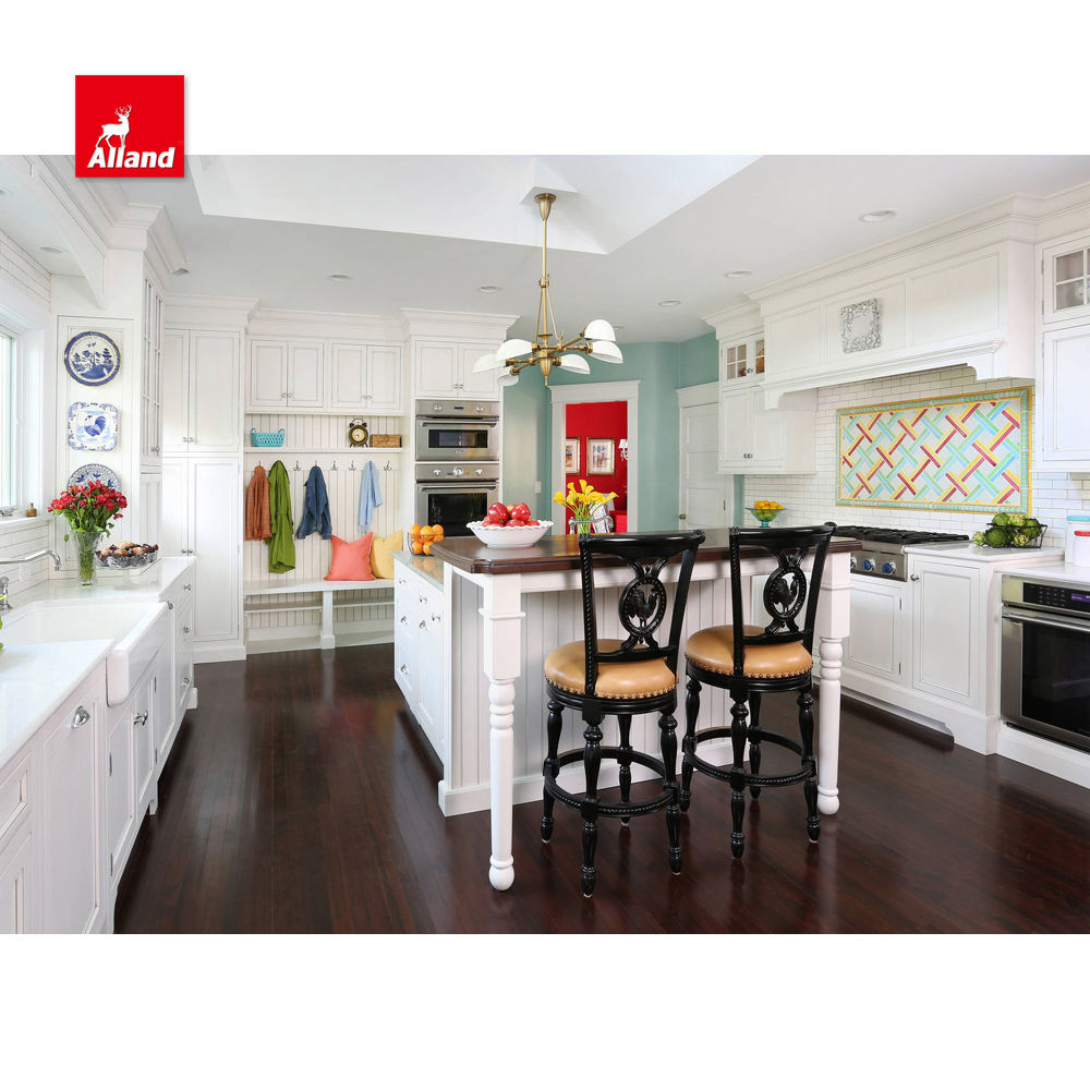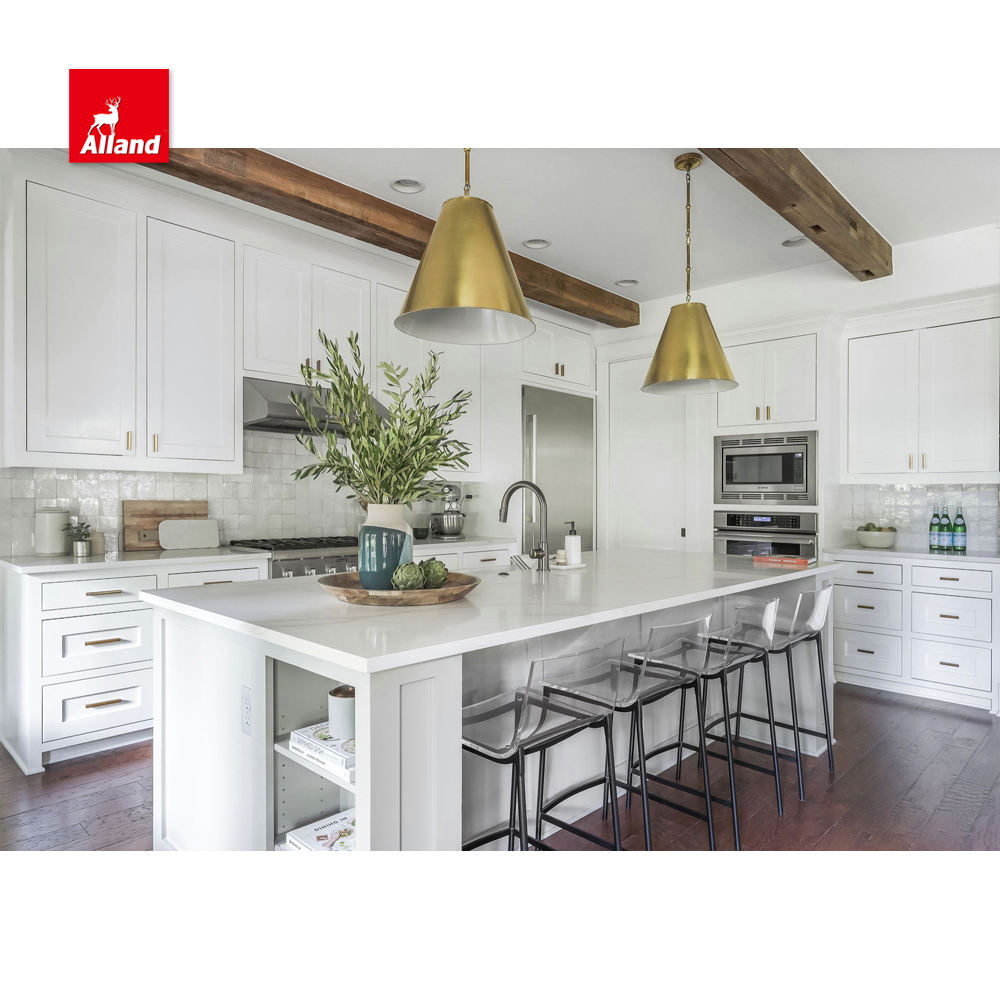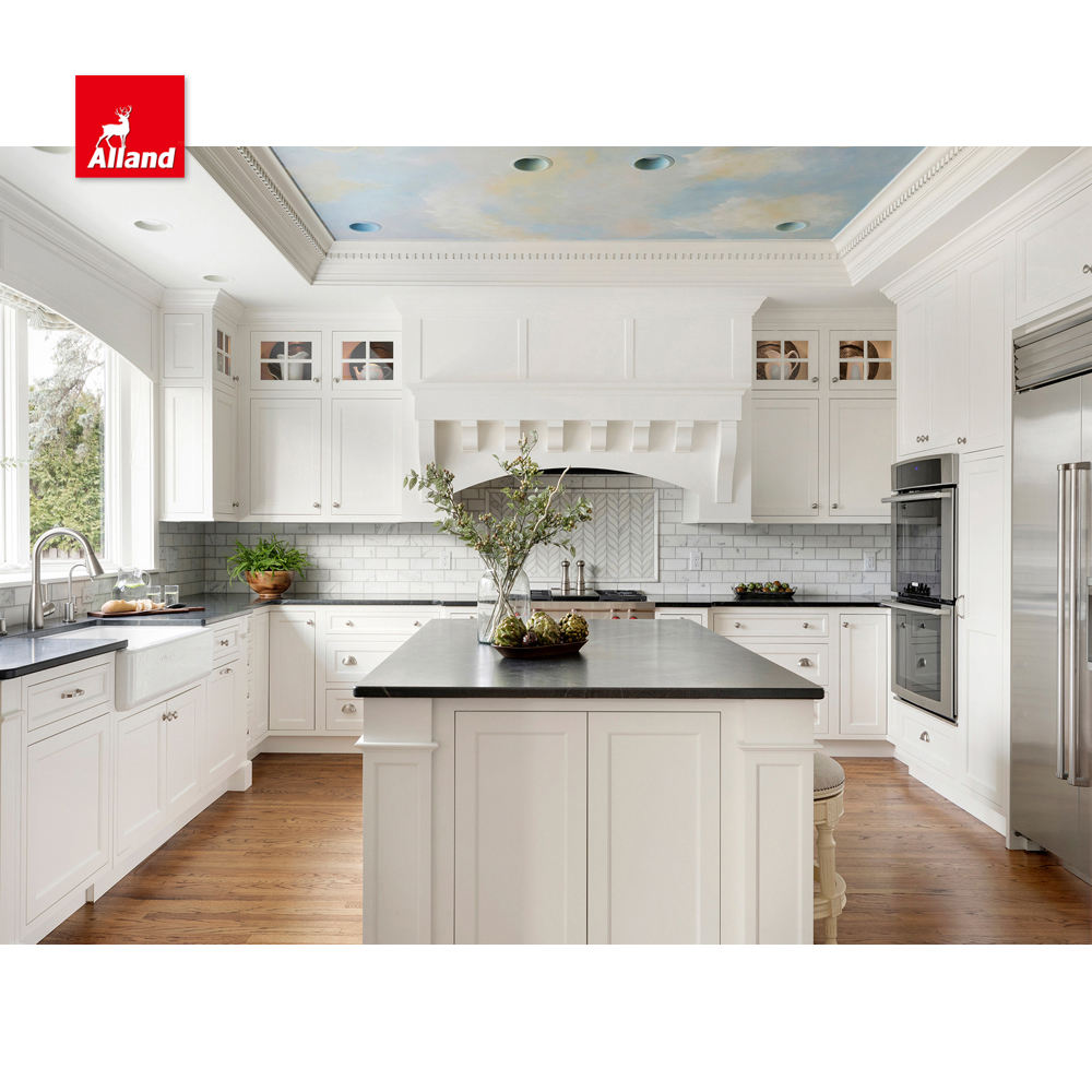 Essential details Warranty: More than 5 years After-sale Service: Online technical support, Onsite Installation, Onsite Inspection Project Solution Capability: graphic design, 3D model design Application: Kitchen, Custom home Design Style: Classic Place of Origin: Guangdong, China Brand Name: Alland Model Number: American Framed Two Tone Kitchen Cabinet Accessories: Backsplash, Drawer Basket, Drawer Slide, Faucet, Handle