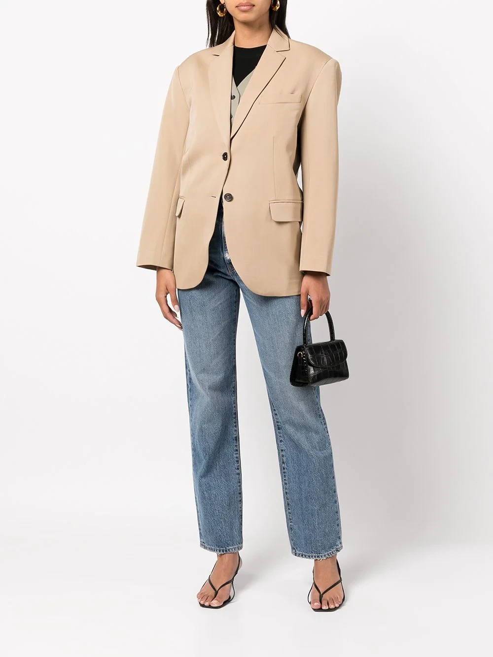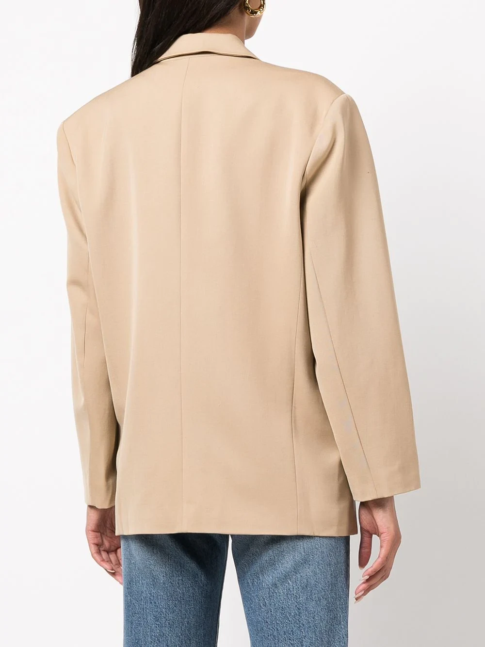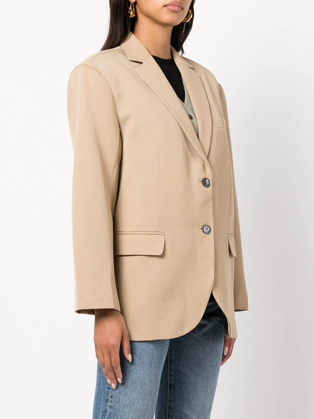 Cut for an oversize fit, ANINE BING's Quinn blazer is seen here in a timeless khaki hue with traditional tailoring elements such as notched lapels.
