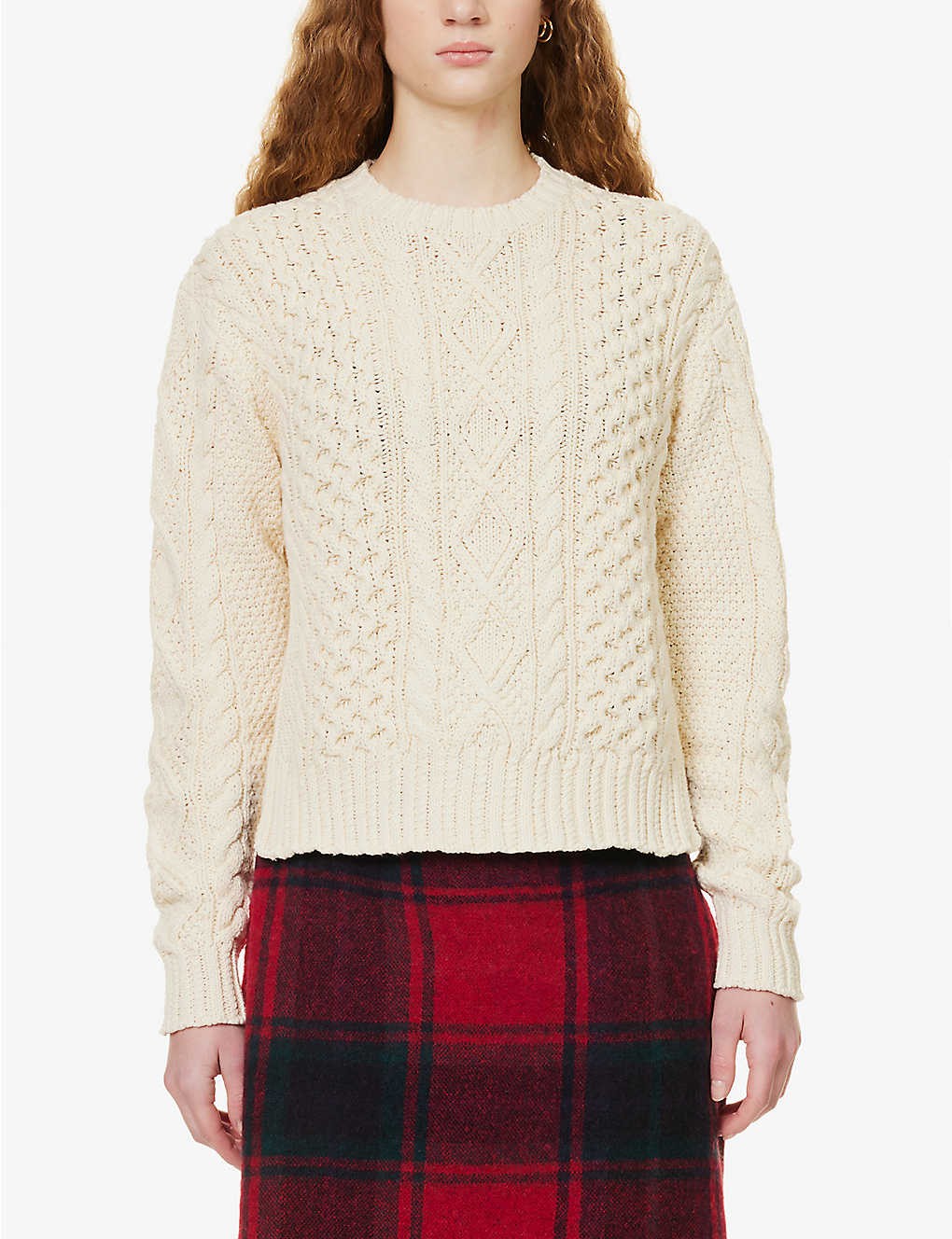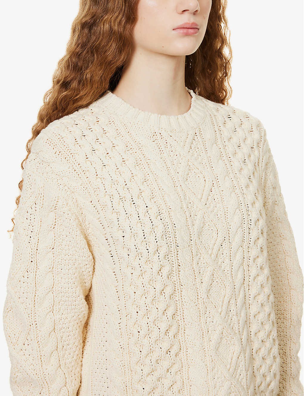 Aran cable-knit cotton jumper