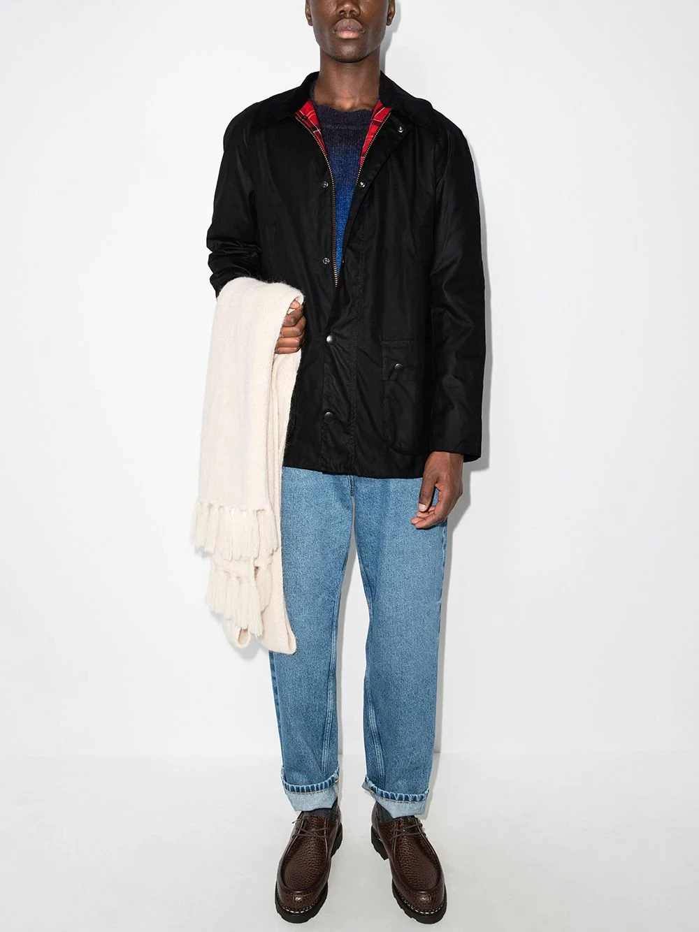 Founded by John Barbour in 1894, British luxury brand Barbour is home to the iconic wax jacket. Practicality and function remain at the heart of the label, as can be seen with this black Ashby wax jacket that has a water-resistant design and pockets towards the side