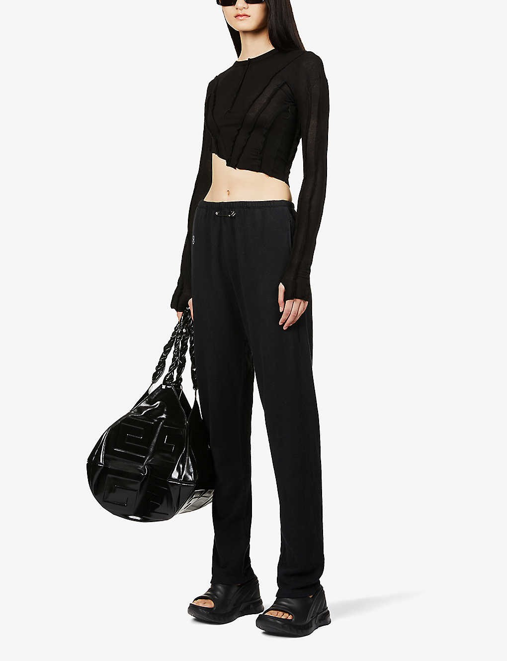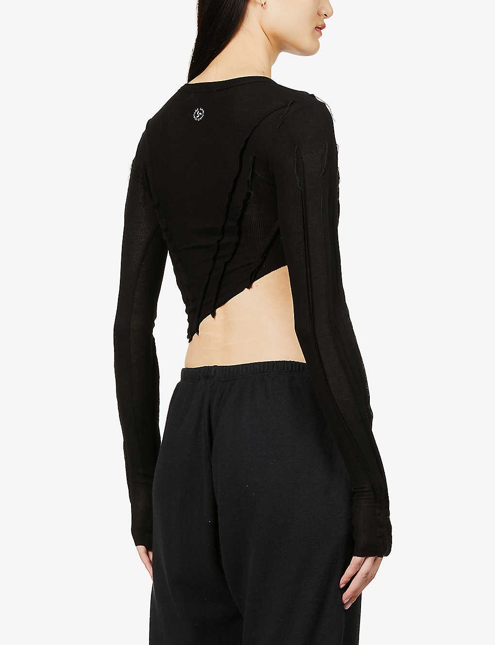 Asymmetric long-sleeved upcycled-jersey top