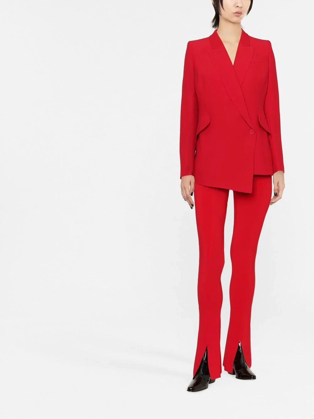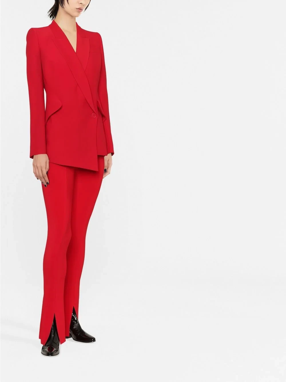 Celebrating Alexander McQueen's propensity for dramatic silhouettes, this single-breasted blazer is defined by an asymmetric design that is further elevated by peak lapels and two front flap pockets.
