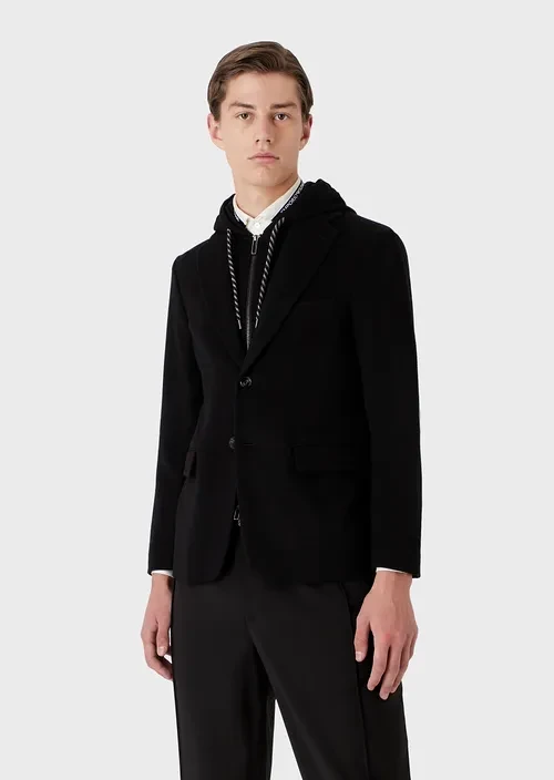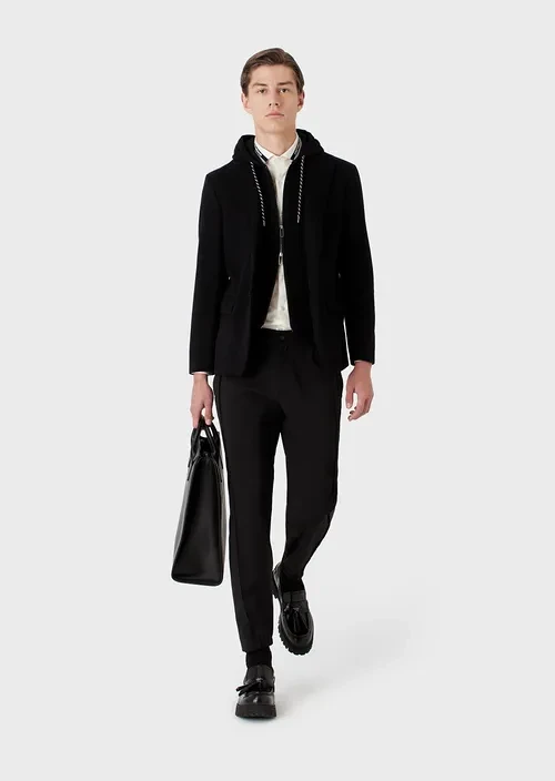 Leisure commitments can also be approached in style. The convenience of a versatile, practical city jacket, perfect for all your activities in the town or countryside. A dual-look garment with a detachable inner panel and hood and zip that can be worn on many different occasions, depending on the look you want to create. The boiled wool and cashmere blend blazer gets urban appeal. A perfect daywear garment to wear in winter.