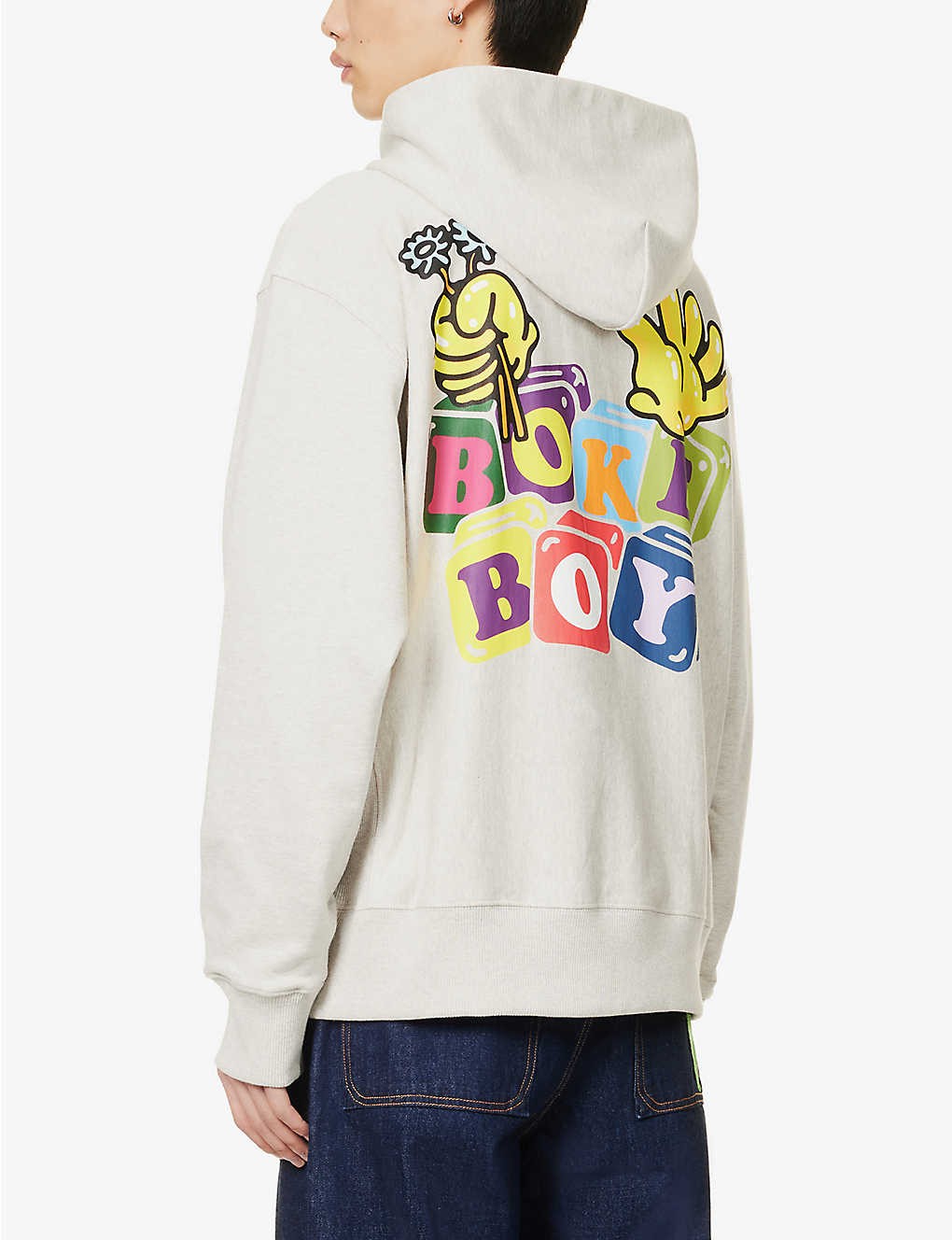 Relaxed fit, hood, dropped shoulders, long sleeves, graphic branding at chest and back, kangaroo pocket at front, ribbed trims