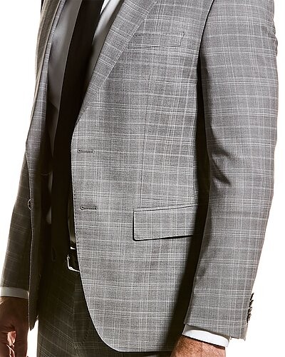 Design details: notch lapel, left chest pocket, two front pockets, non functional button cuffs, two-interior pockets, and side vents at hem
