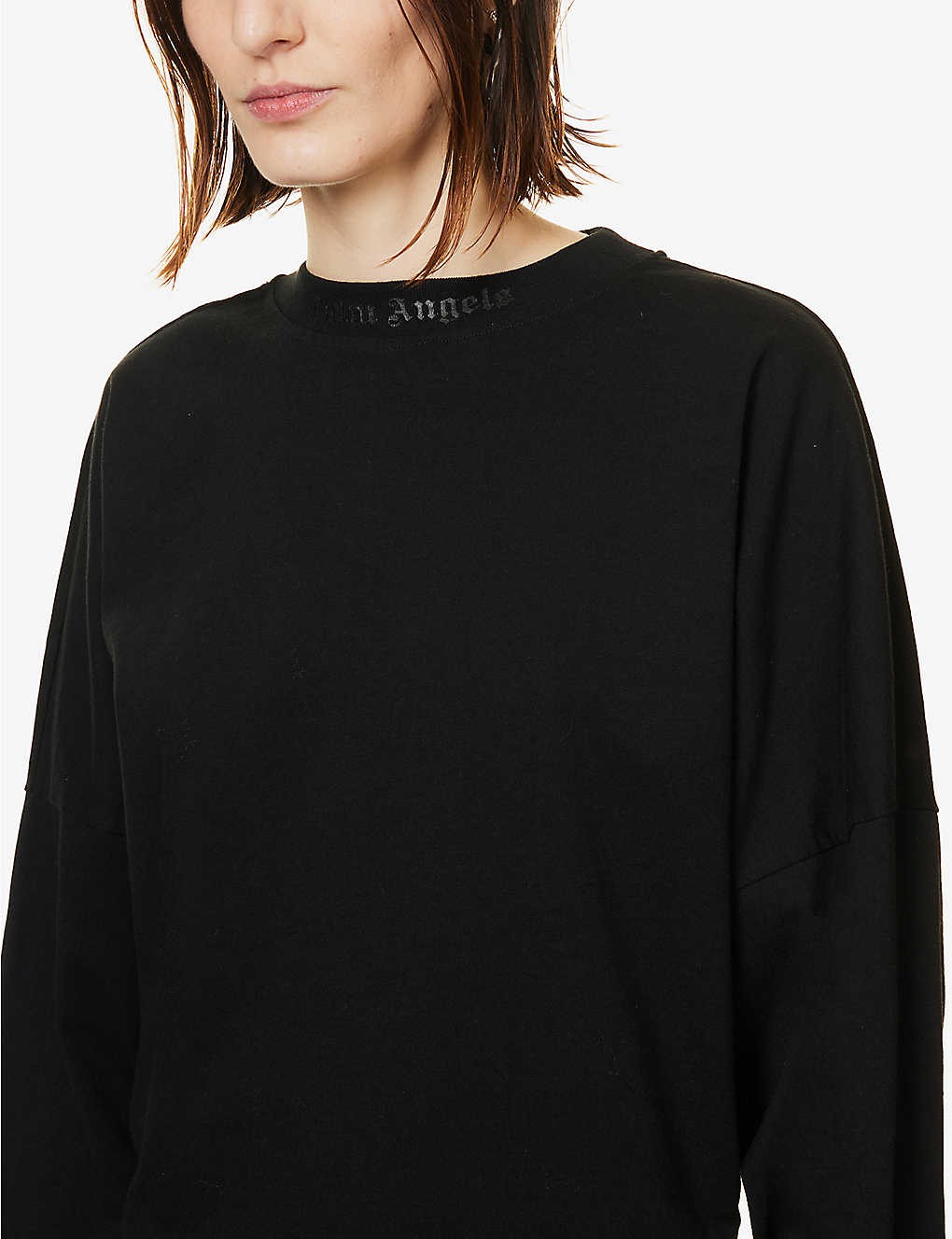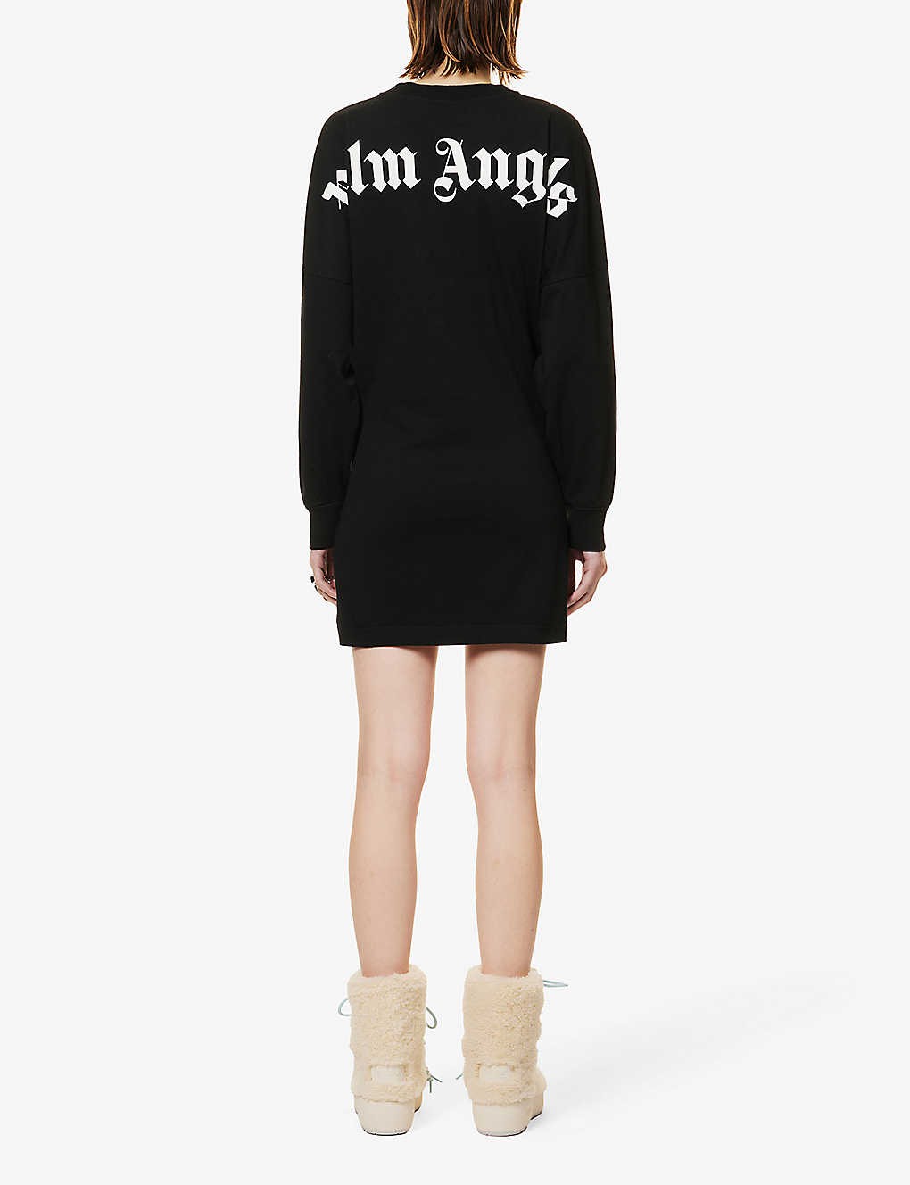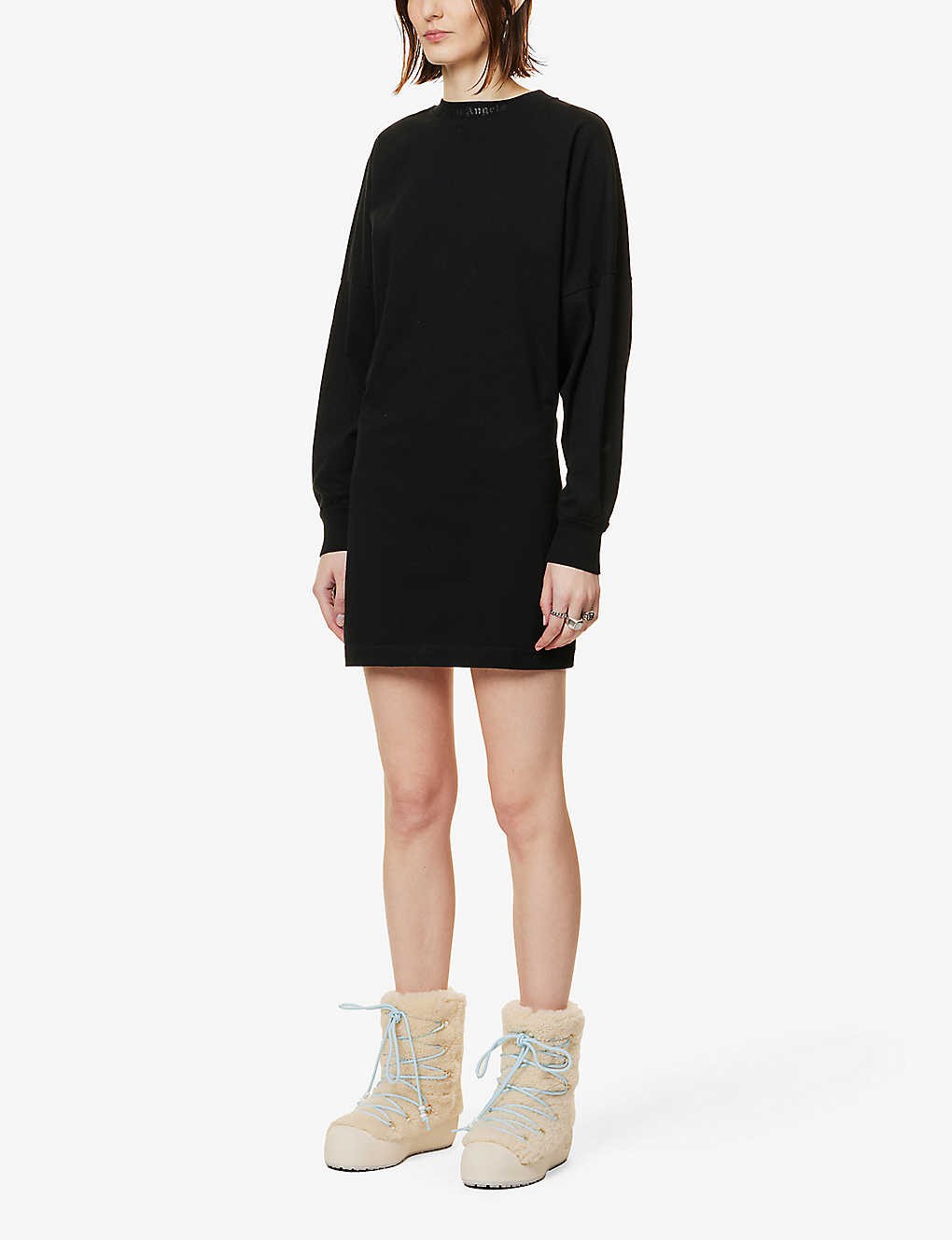Brand-print dropped-shoulder cotton mini dress