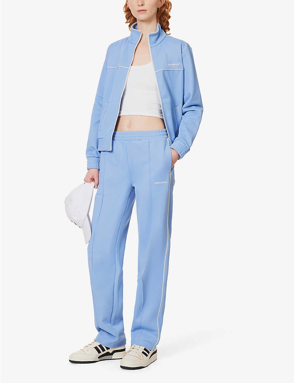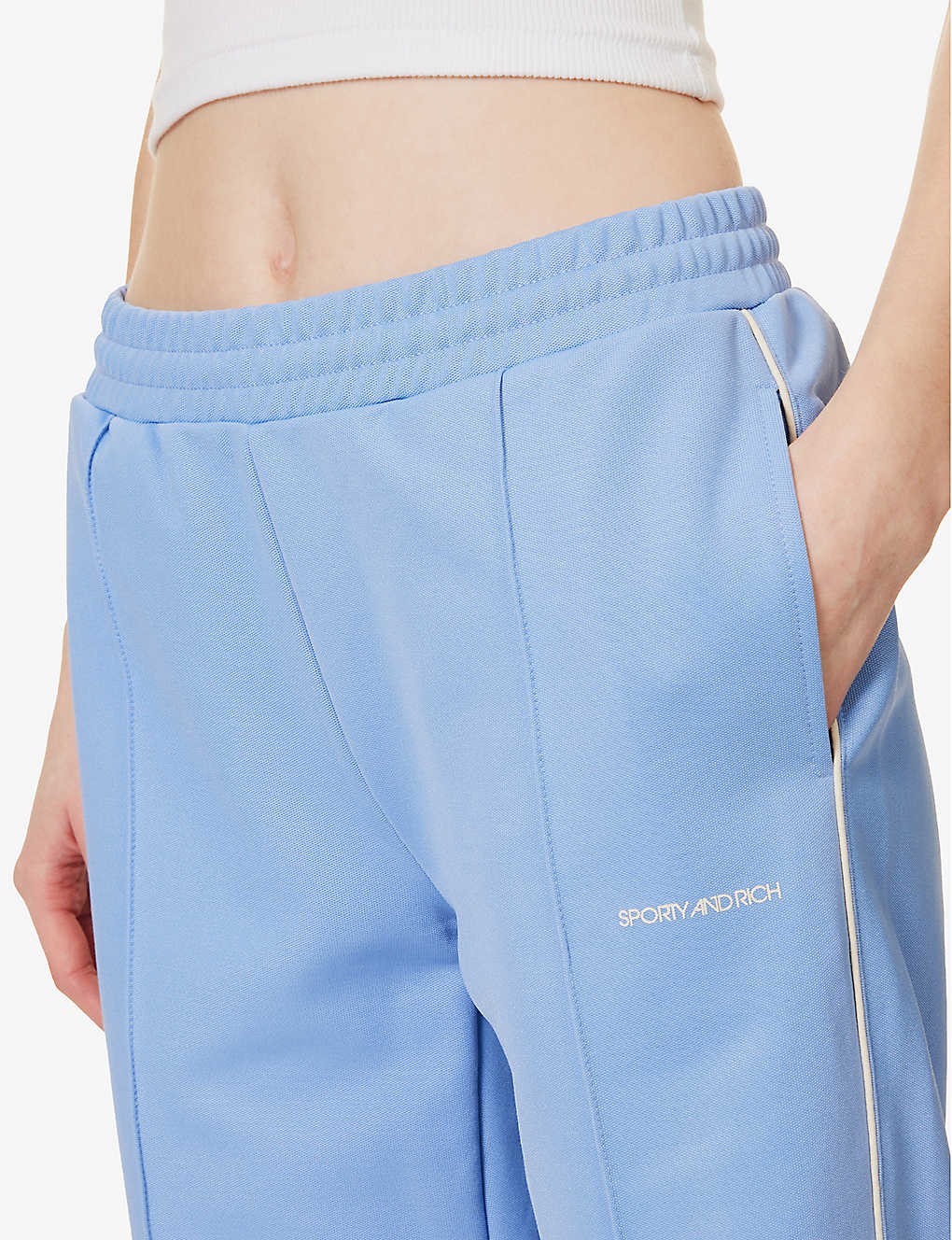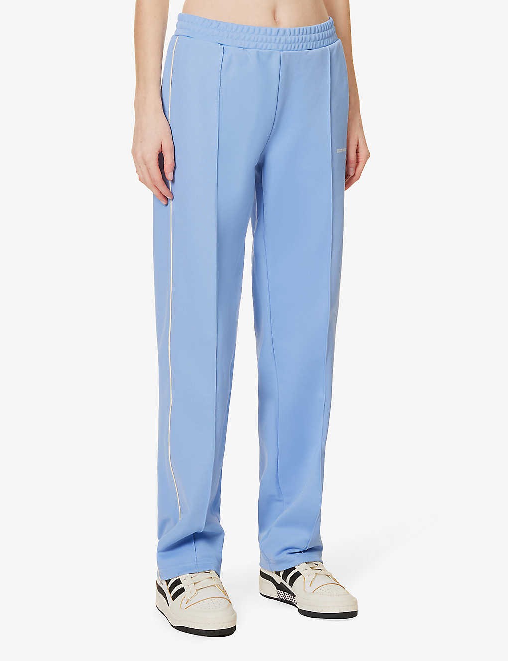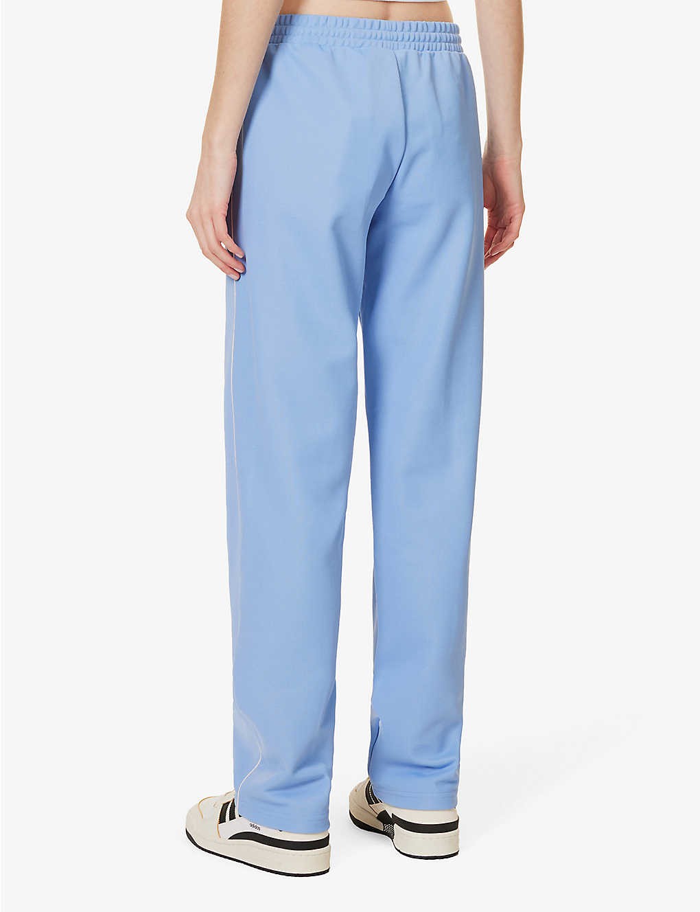 Brand-print elasticated-waist straight-leg mid-rise woven trousers