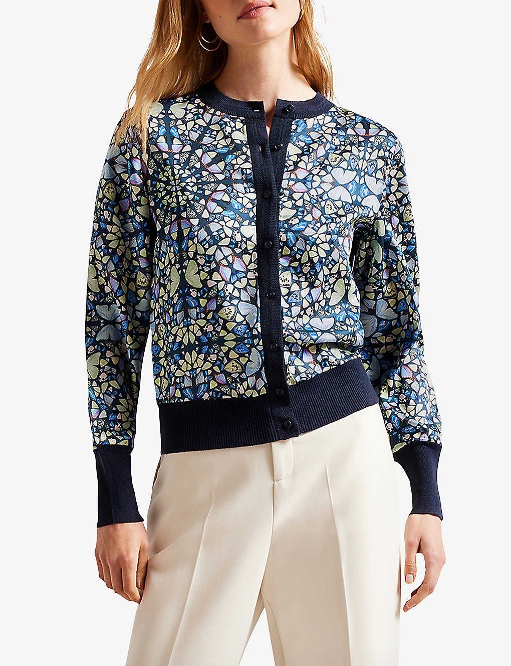 Brieli kaleidoscope butterfly-print woven cardigan
