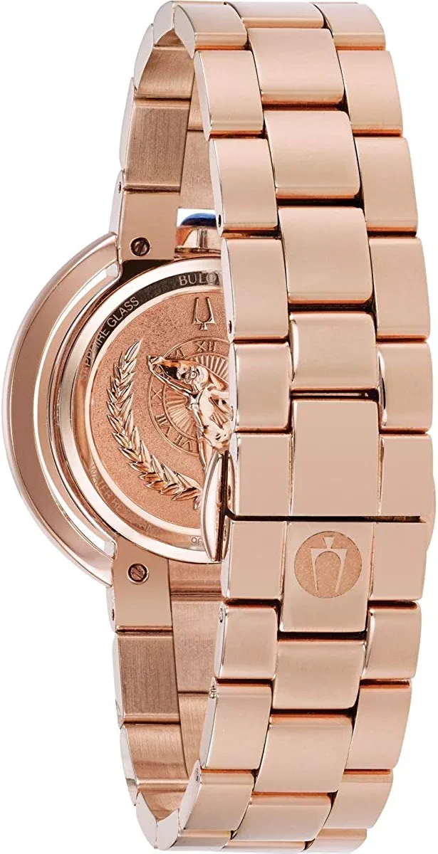 Case diameter: 35 mm, case height: 8 mm and case color: Rose gold/dial color: silver