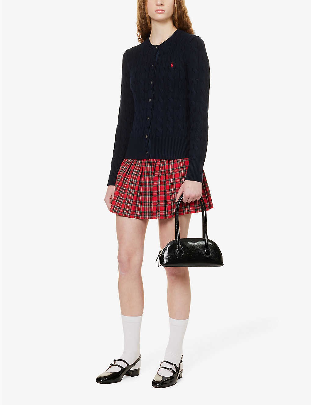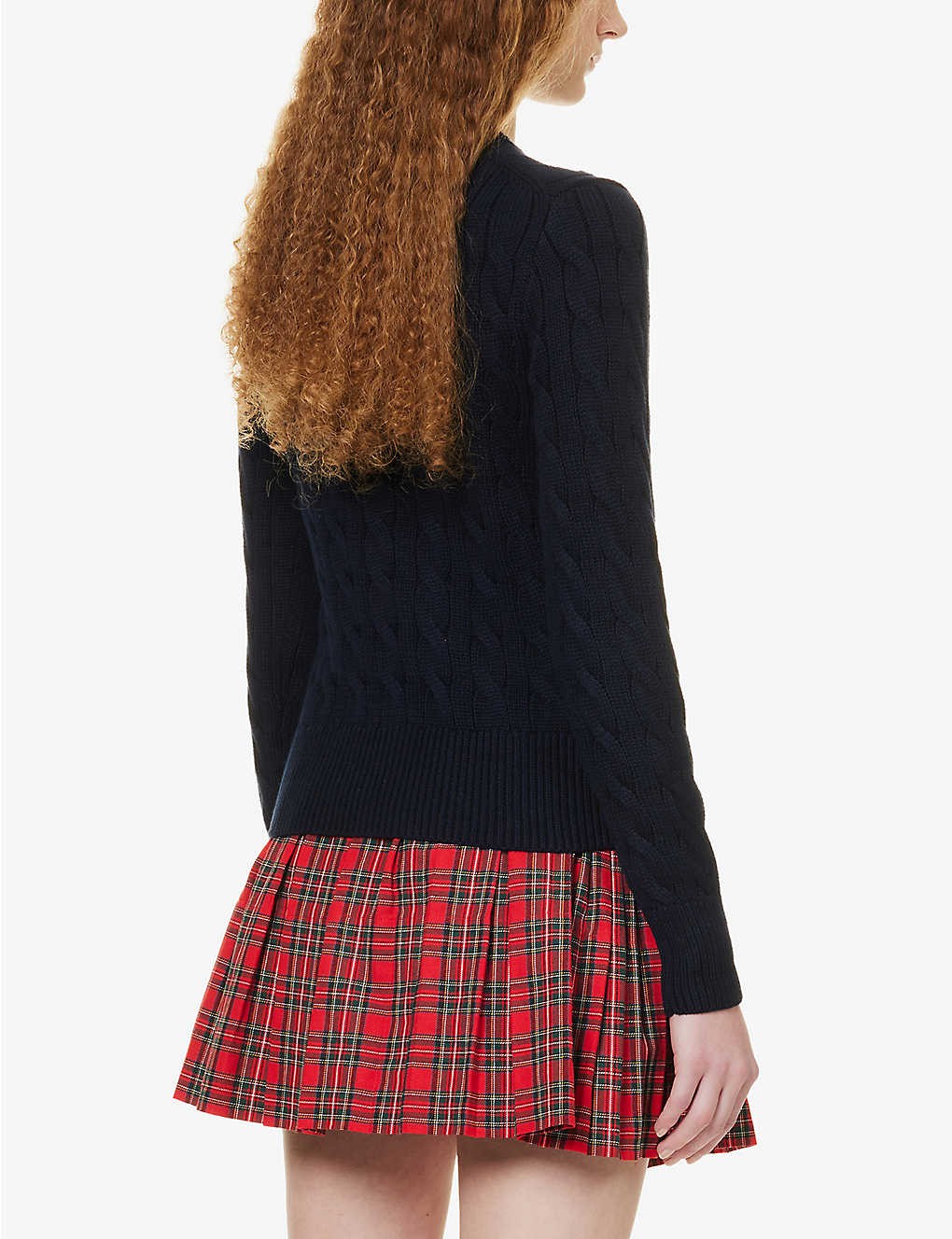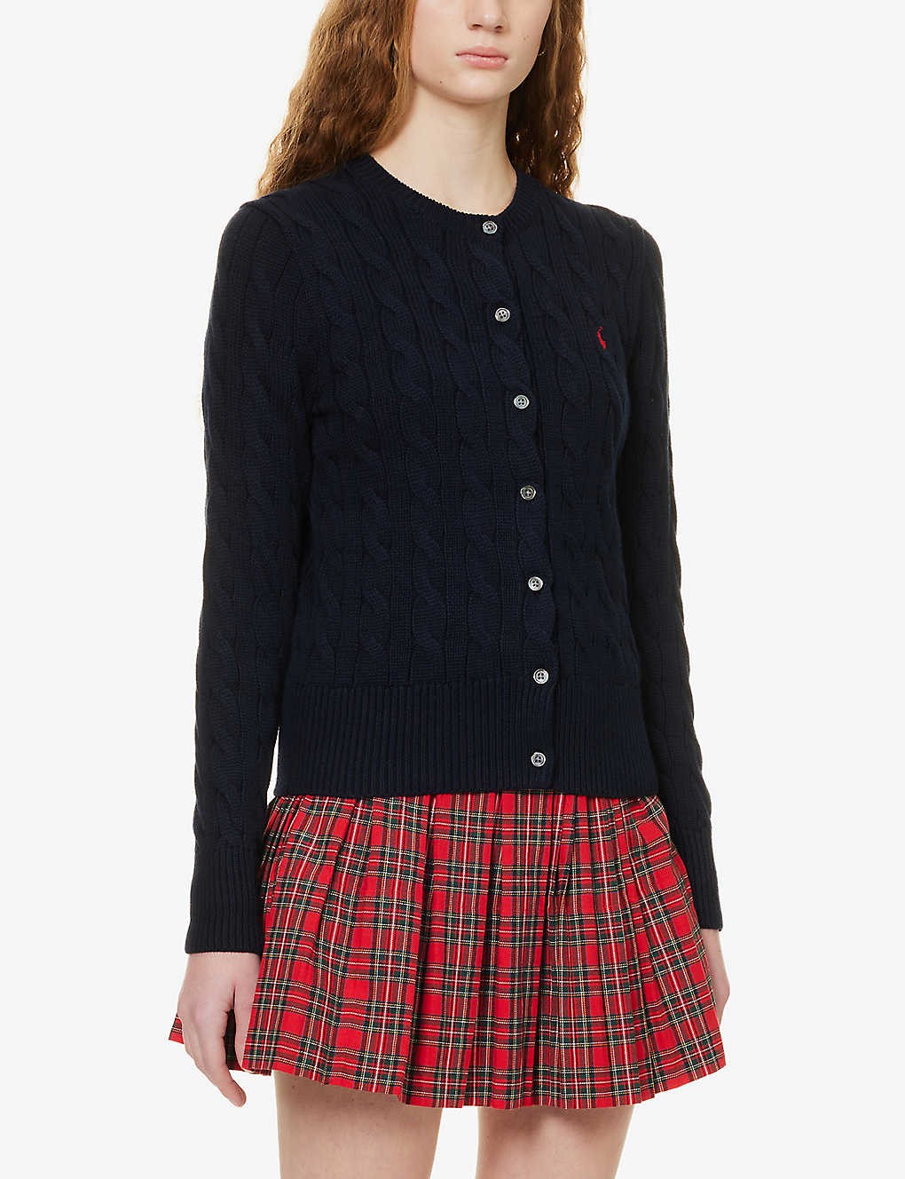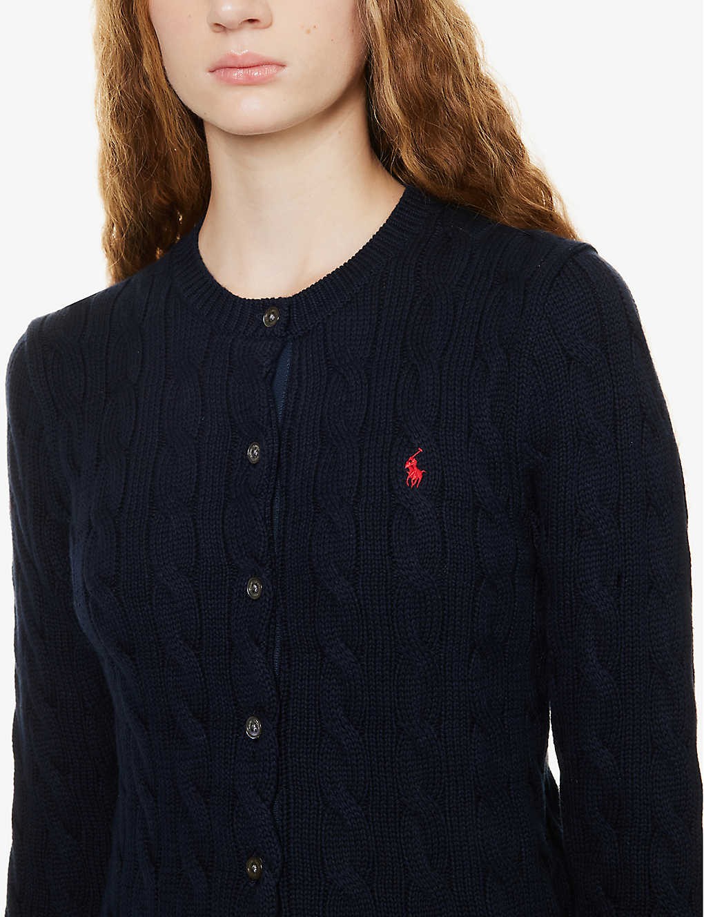 Cable-knit brand-embroidered cotton cardigan