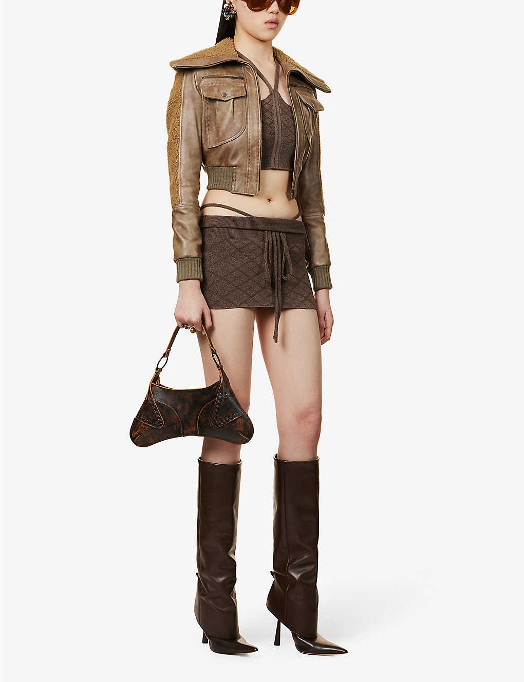 Leticia Washed Faux Leather Mini Skirt - Brown