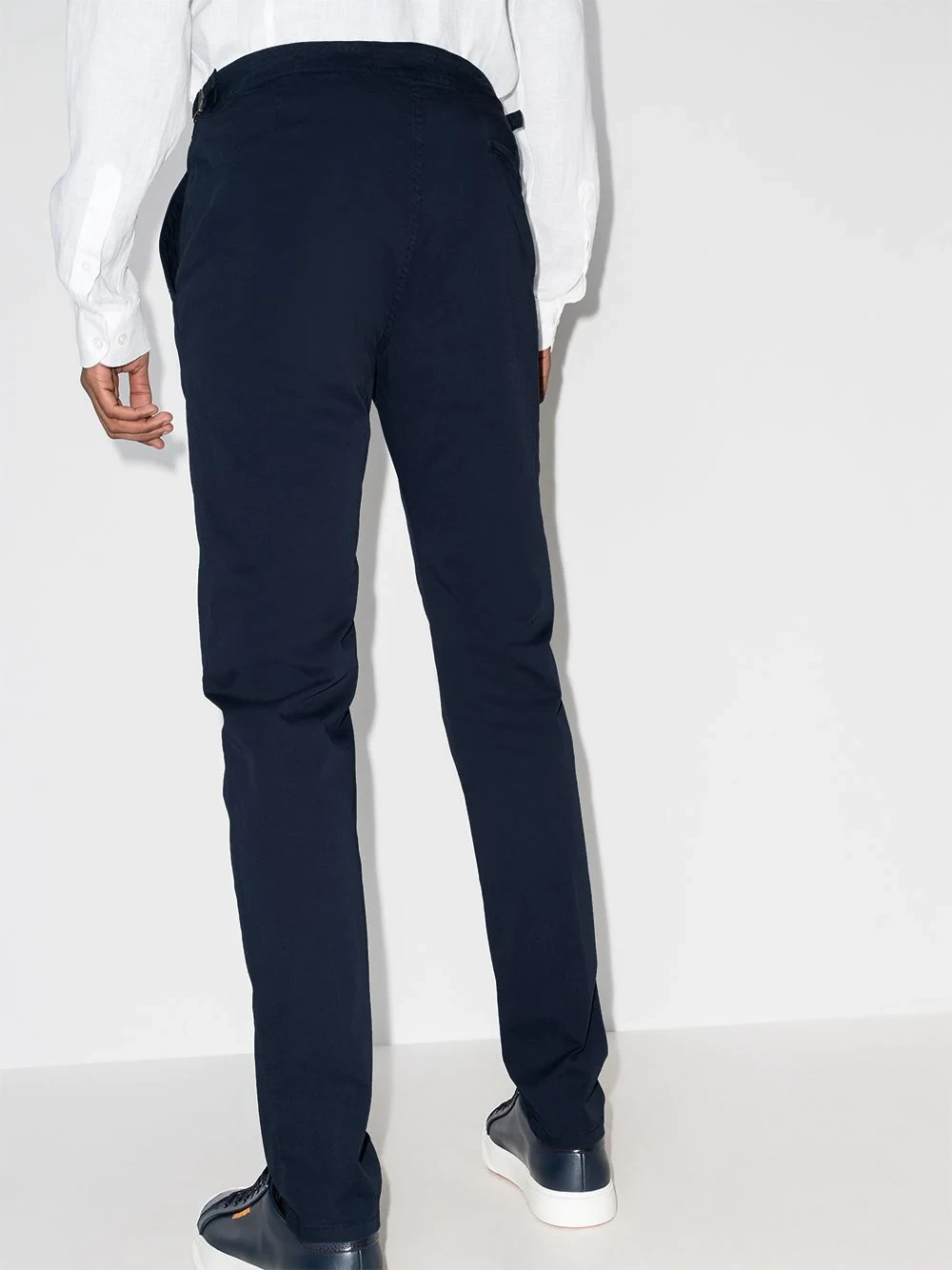 Sad because you can't find any nice looks in your wardrobe to wear? The only thing that should be blue are these navy cotton-blend Campbell trousers from Orlebar Brown that will fit you like a dream thanks to its adjustable straps seen at the sides. So turn the frown upside down. Featuring a mid rise, adjustable straps, a concealed fastening, side pockets, a straight leg, a regular length and a back pocket.