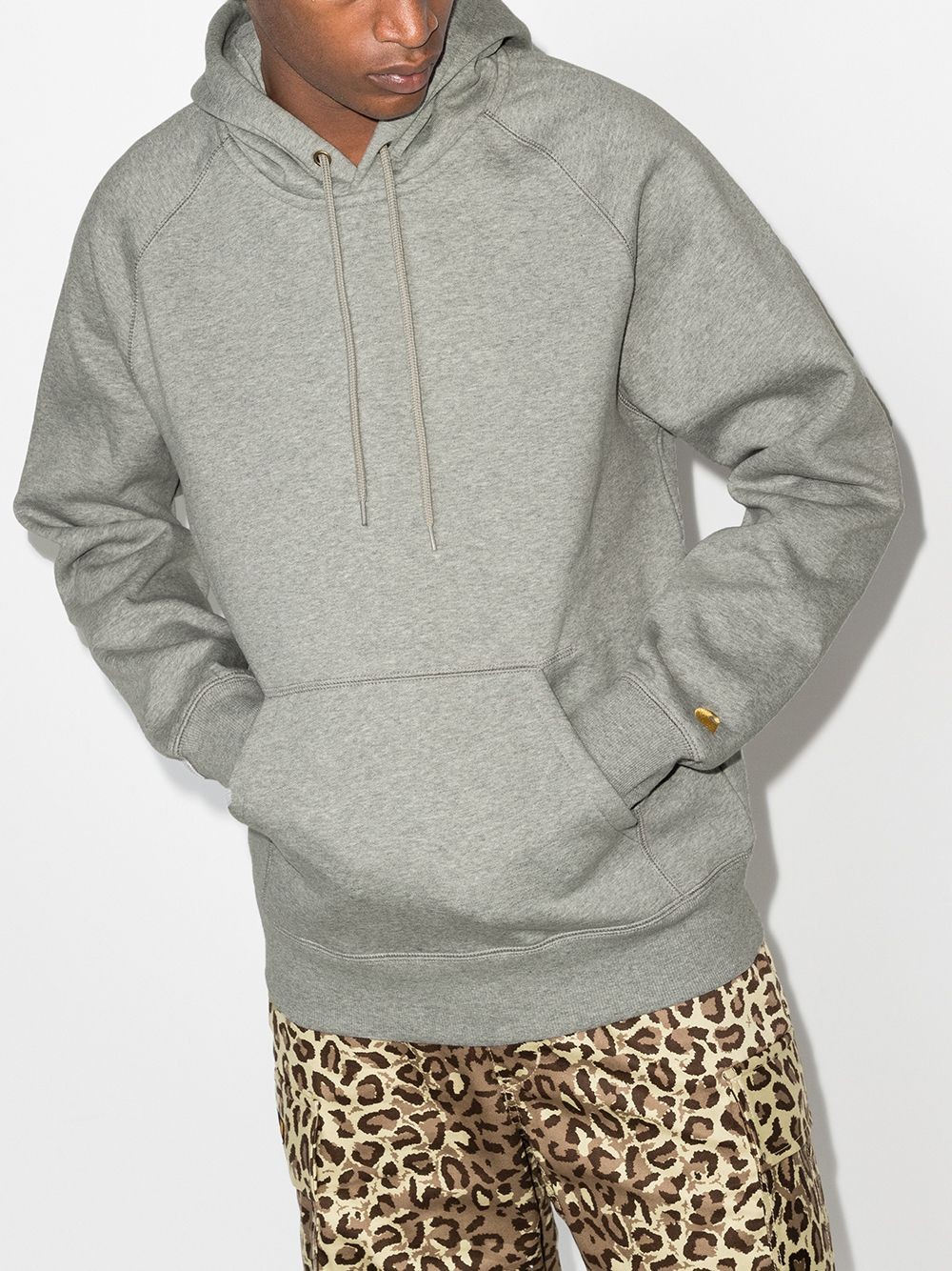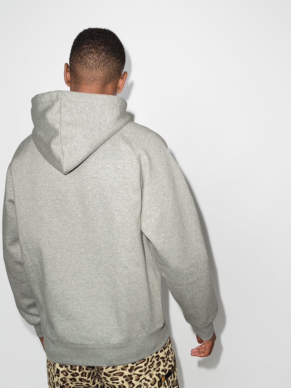 Carhartt Wip transforms the classic silhouette of a hooded sweatshirt by adding a branding detail. Crafted from a soft blend of cotton in mélange grey, this piece is cut to a drawstring hood profile and complemented with the brand's logo embroidered at the sleeve.
