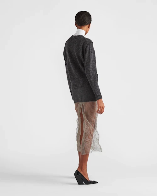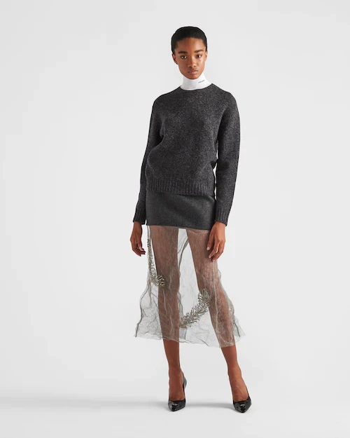 This fine cashmere and wool turtleneck is part of a selection of garments presented during the FW22 fashion show, inspired by the concept of simple, unconventional luxury. The contrasting collar adds a touch of modernity to the garment and features the intarsia logo.