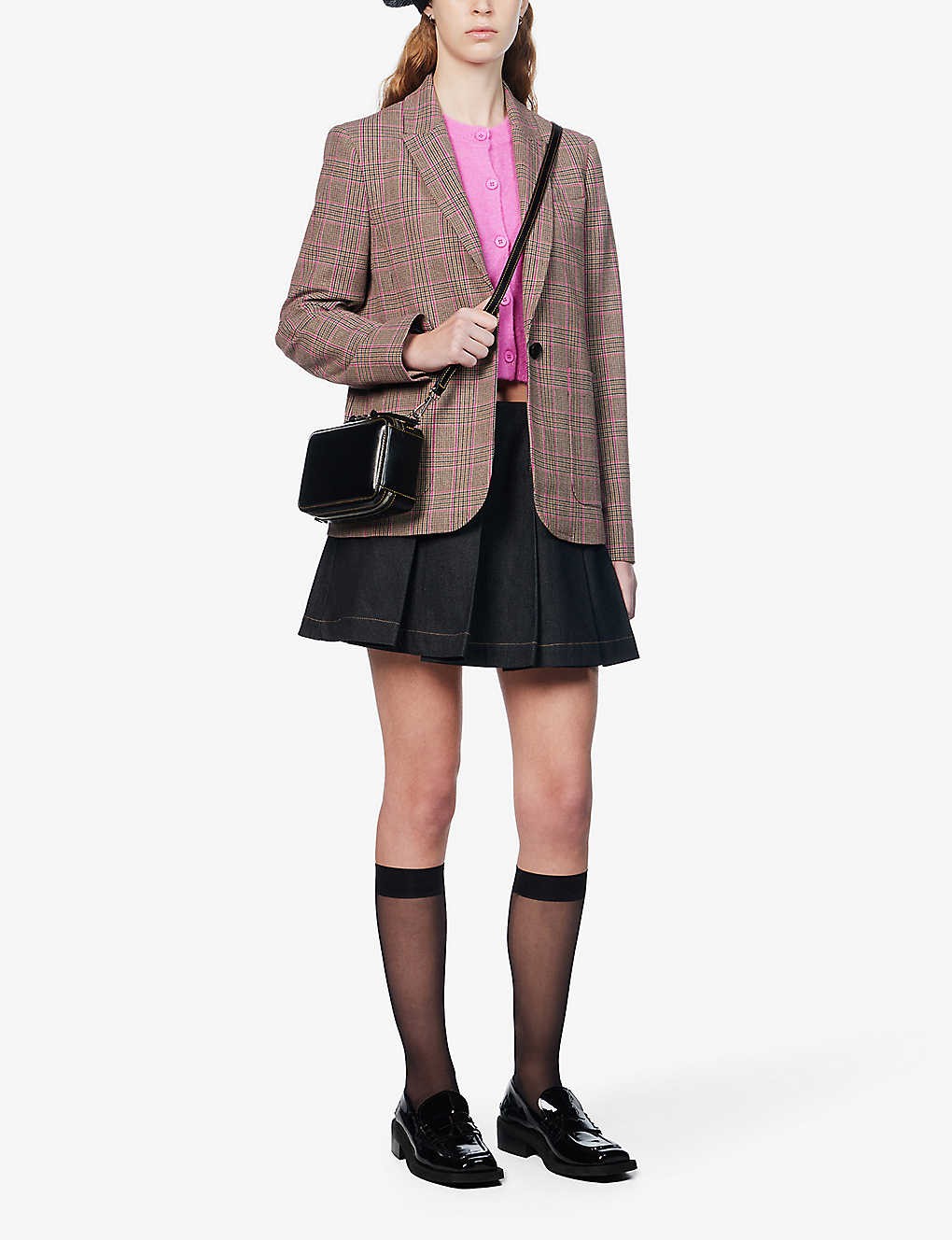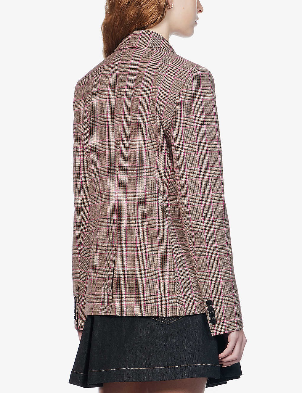 Check-print single-breasted stretch-recycled polyester-blend jacket