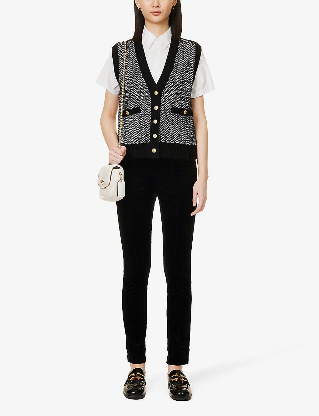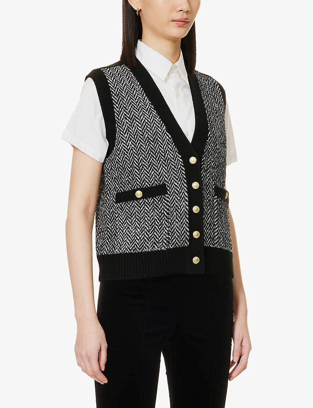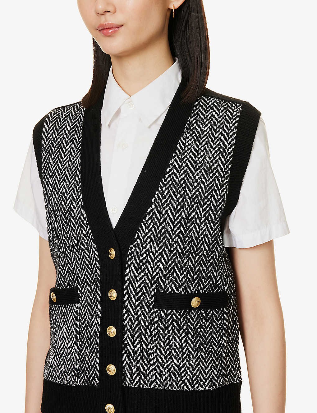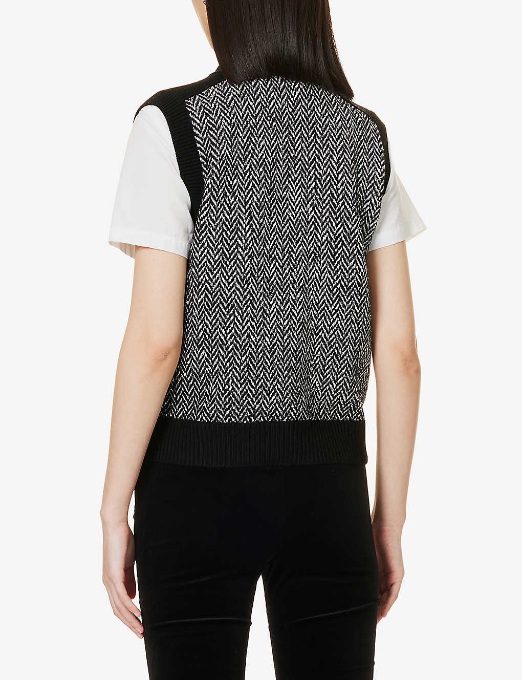 Chevron-pattern V-neck knitted vest