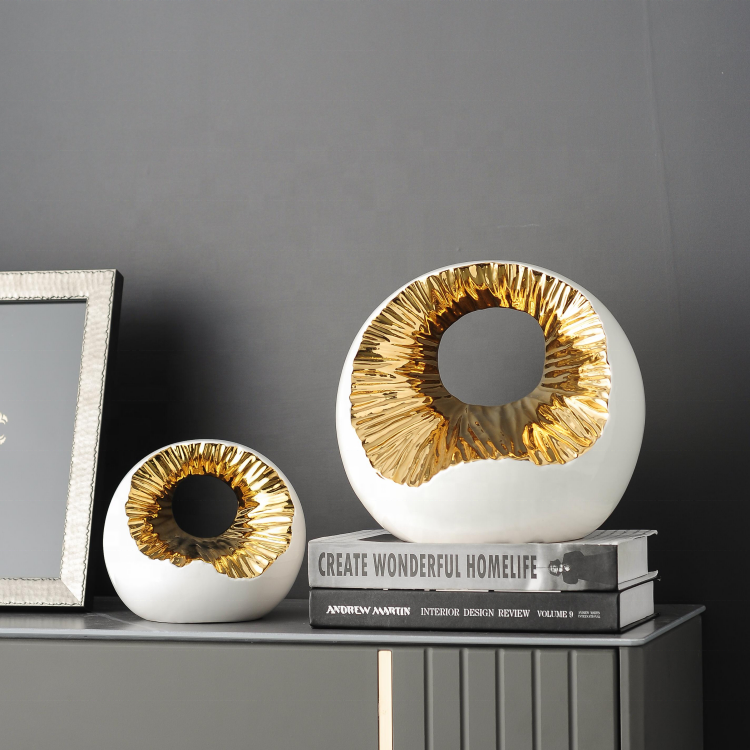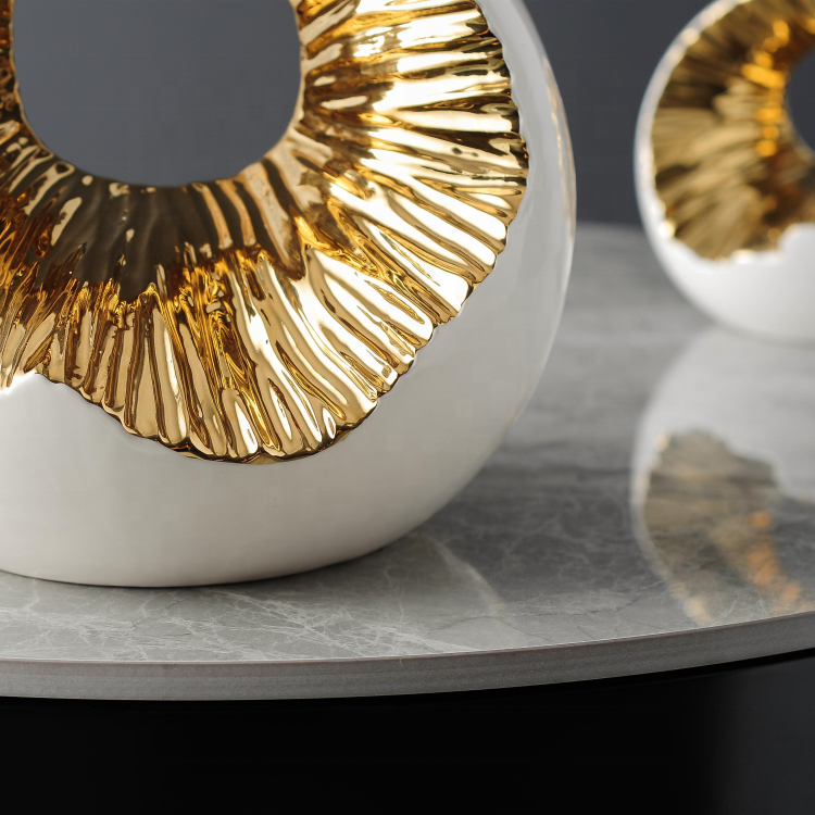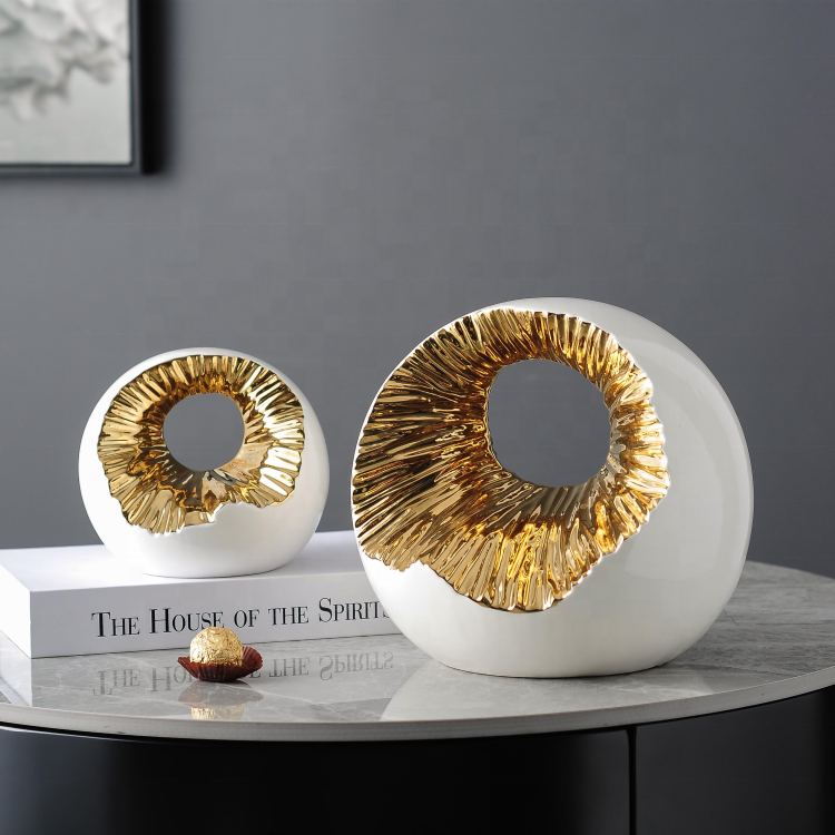 Essential details Type: Other Home Decor Design Style: Minimalist, Contemporary, Traditional, Transitional, Rustic, Shabby Chic, Coastal, Scandinavian, Bohemian, Mid-Century Modern, Industrial, Eclectic, Farmhouse, Country, Art Decor, Asian Zen, Tropical, Vintage, Novelty, Moroccan, Casual, Oriental, Children's, Craftsman, Southwestern, CLASSIC, Modern, Glam, Morden Luxury, Japandi, Wabi-sabi Place of Origin: Guangdong, China Brand Name: Yalang Home Model Number: YL-34035G-2 Material: Ceramic, Ceramic Product Name: Home Decoration ornament Applicable People: Home Hotel Coffee Office Living Room Packing: Inner Box Color: Golden/silver Expiration date: long-term Feature: Modern Interior Decorations Shape: Round Shape Style: Modern Art Antique Use: Home Dceroation Commercial Buyer: Caterers