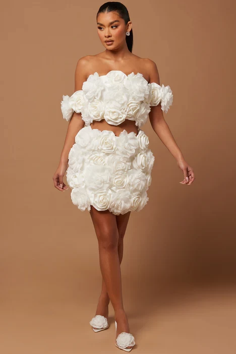 Cindy Floral Mini Skirt - White