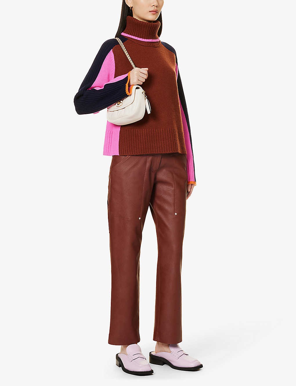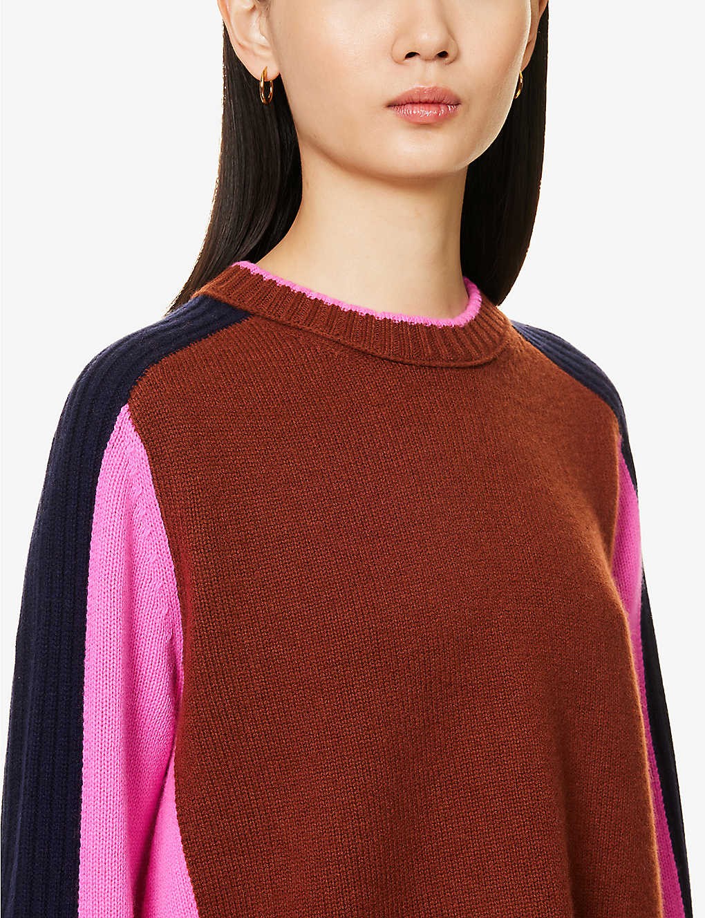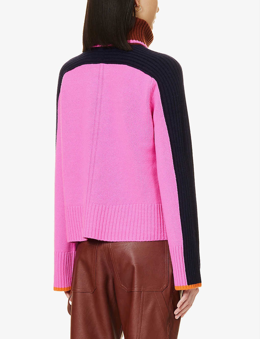 Colour-block detachable-snood wool and cashmere-blend jumper