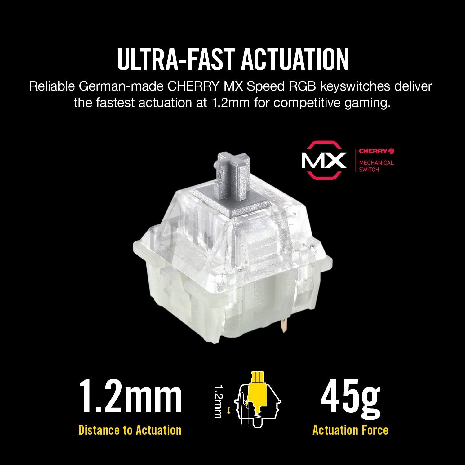 Get the RAPIDFIRE advantage CHERRY MX Speed mechanical key switches provide the reliability and accuracy you demand, with blistering fast 1.2 millimeter actuation