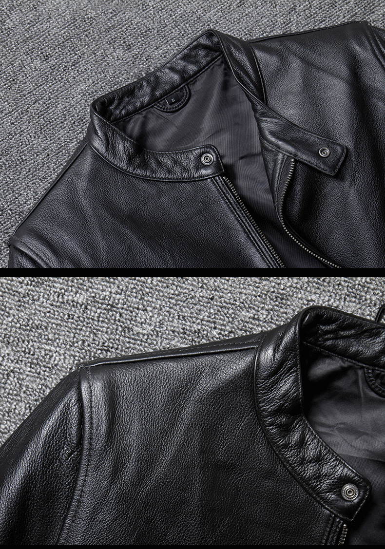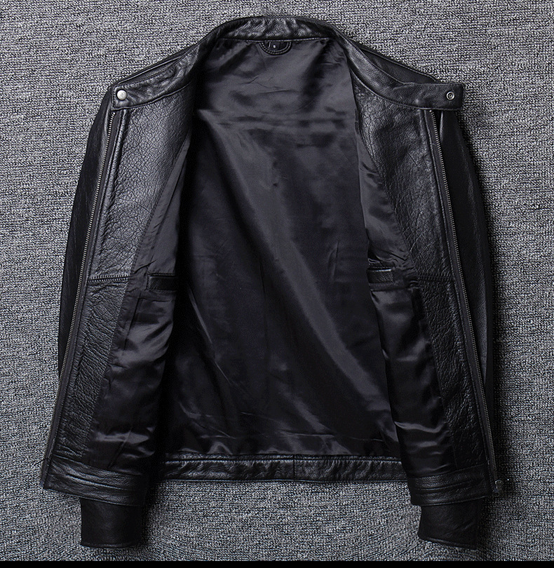 Essential details Place of Origin: Shandong, China Brand Name: OEM/ODM Model Number: c220811-13 Processing Type: Tanned Fabric Type: Woolen Feature: Waterproof, Reversible, Breathable, Windproof Collar: Stand Shell Material: GENUINE LEATHER Supply Type: OEM service Leather Type: COW SKIN Material: Polyester / Cotton Technics: Plain Dyed Gender: Men, Men Season: Spring Clothing Length: Regular Closure Type: zipper Sleeve Style: Regular Hooded: NO Thickness: Standard Filling: None Type: Regular Decoration: None 7 days sample order lead time: Support Weaving method: nonwoven Item Type: Bomber Jacket Pattern Type: Solid Style: Casual Product name: leather jacket Color: Black Size: XS-3XL Custom Sizes MOQ: 20 Pcs Packing: 1pc/polybag Sample: Accept Customize Sample Sample time: 7-10days PAYMENT: Trade Assurance SHIPPING: DHL\EMS\UPS\FEDEX\by Sea\by Air