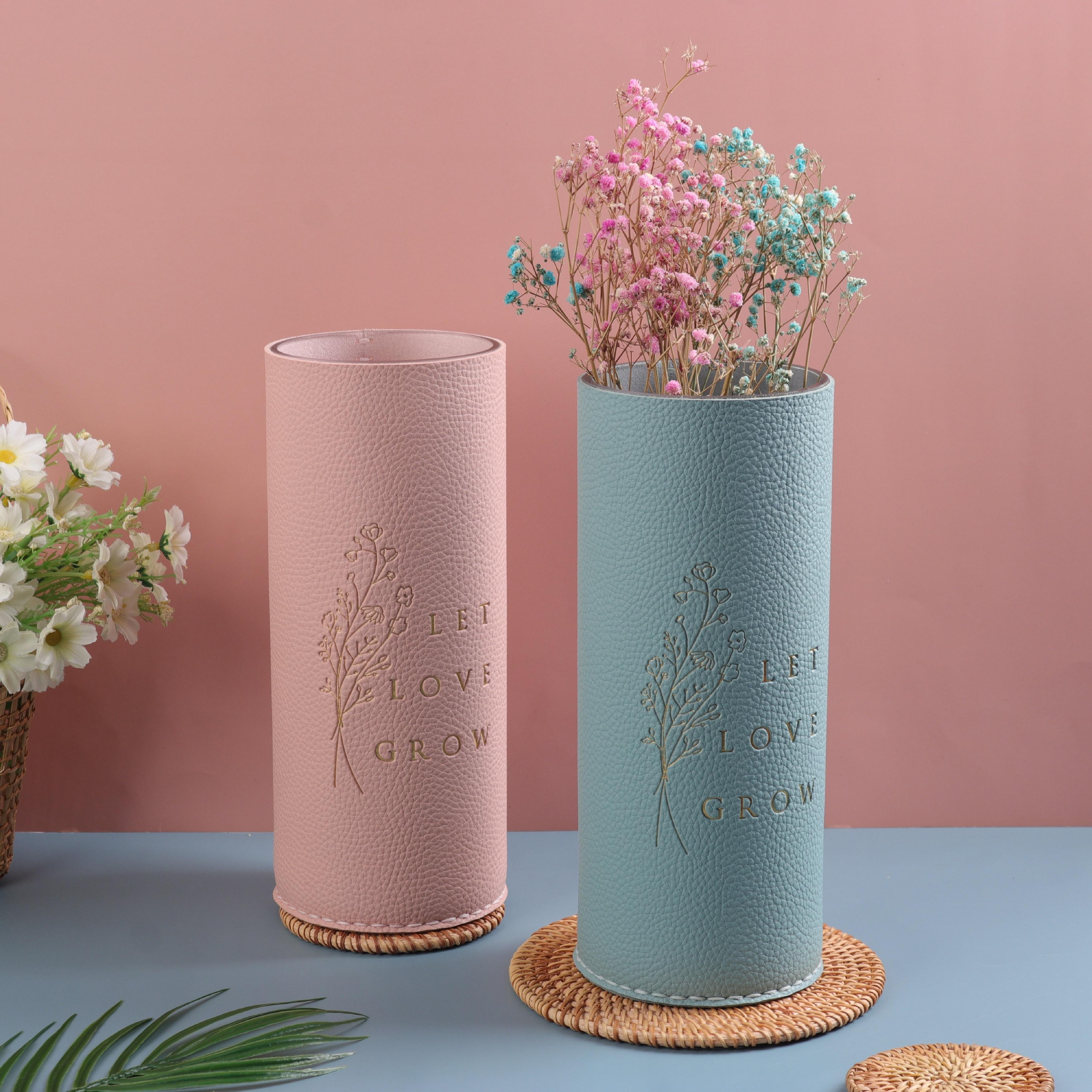 Customized pu leather vases home decor handmade high flower pots glass vase