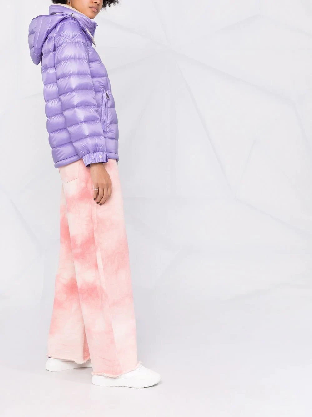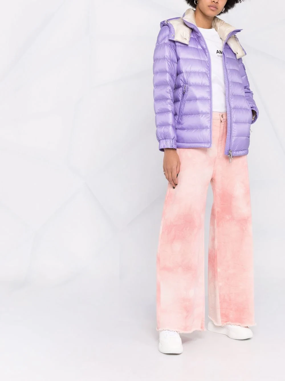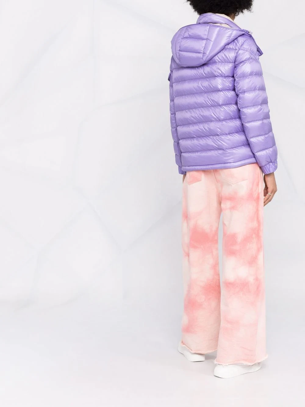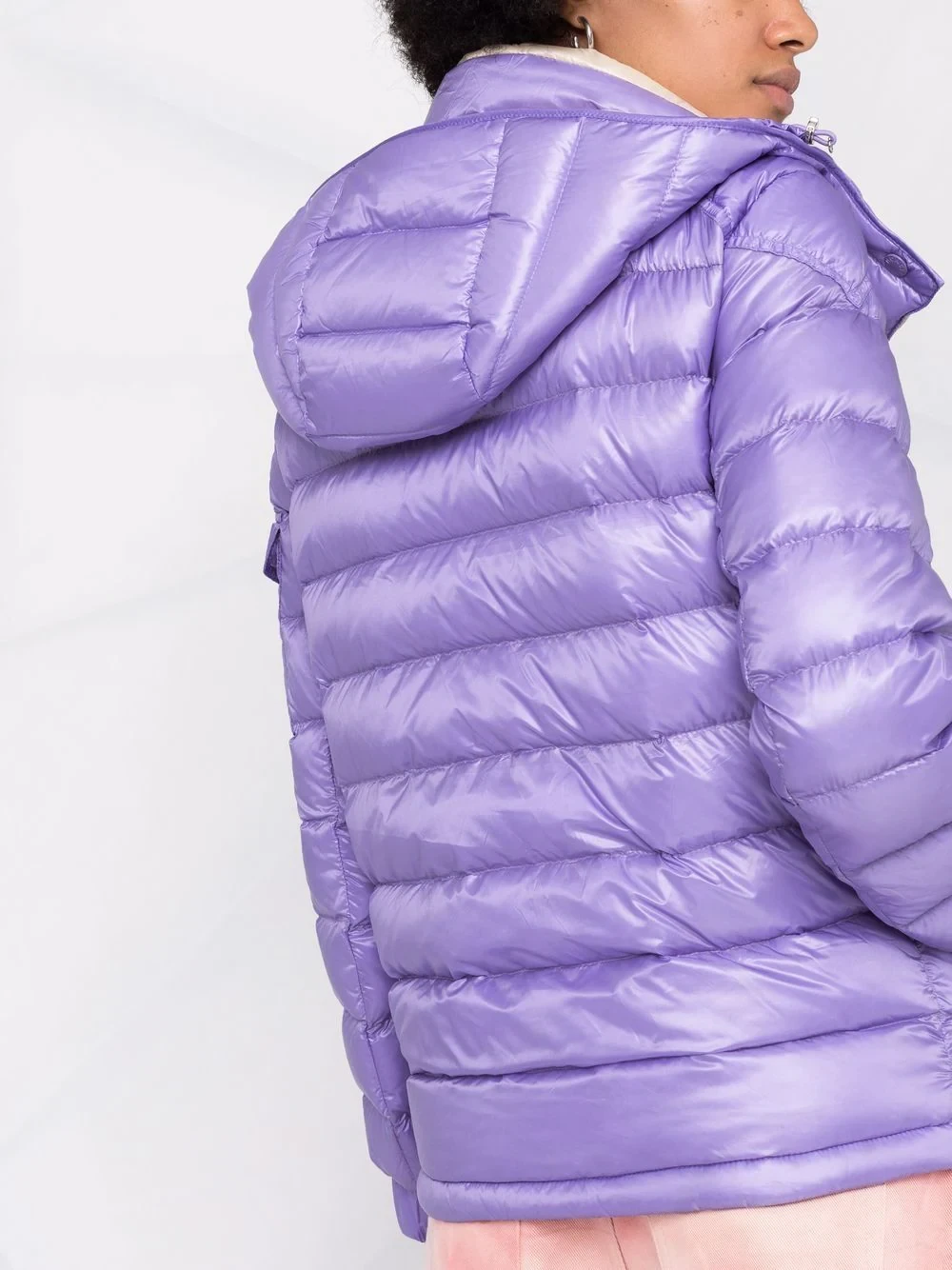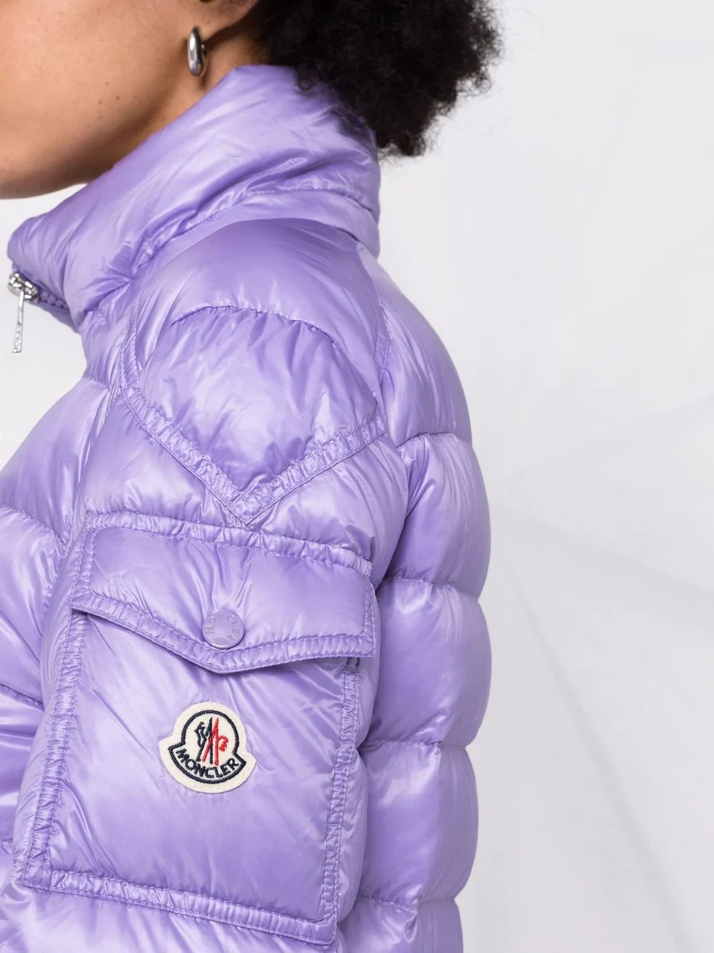 Known for their padded down jackets, Italian fashion house Moncler was founded in 1952 and started life creating quilted sleeping bags and tents. Presented in a lilac hue, this Dalles jacket is detailed with feather-down padding and the label's signature logo patch to the outer left sleeve.