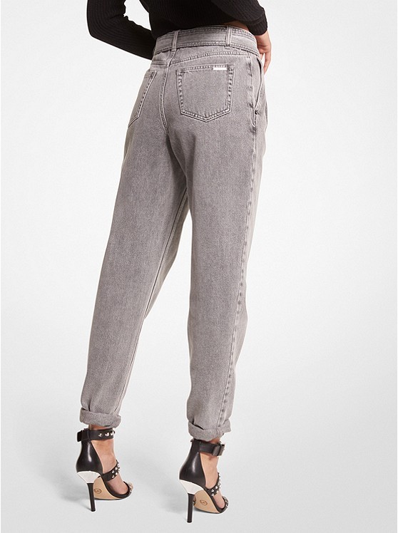 Everyday denim gets reimagined with ’90s-inspired appeal. Tailored with front pleats, these high-waisted pure cotton jeans have a self-tie belt and fall to a tapered leg. Highlight the silhouette with a cropped tee or fine knit.