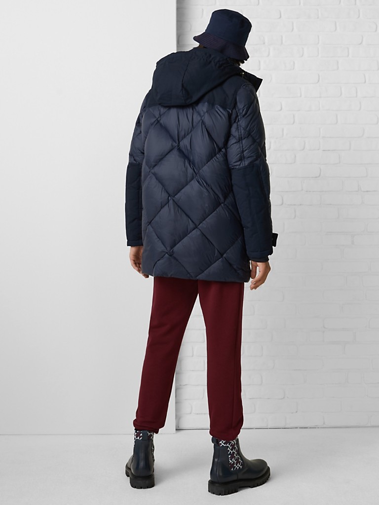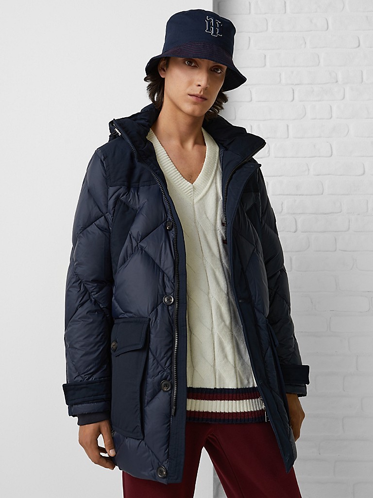 Tommy Hilfiger men's jacket. As seen on the runway, this hooded parka is designed with warm, eco-friendly RDS insulation and a removable bungee drawstring hood.