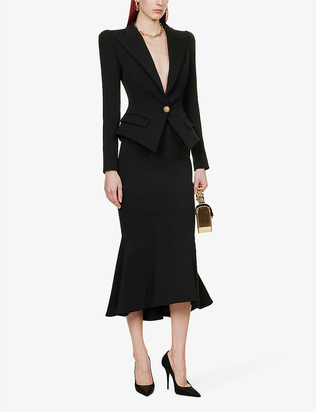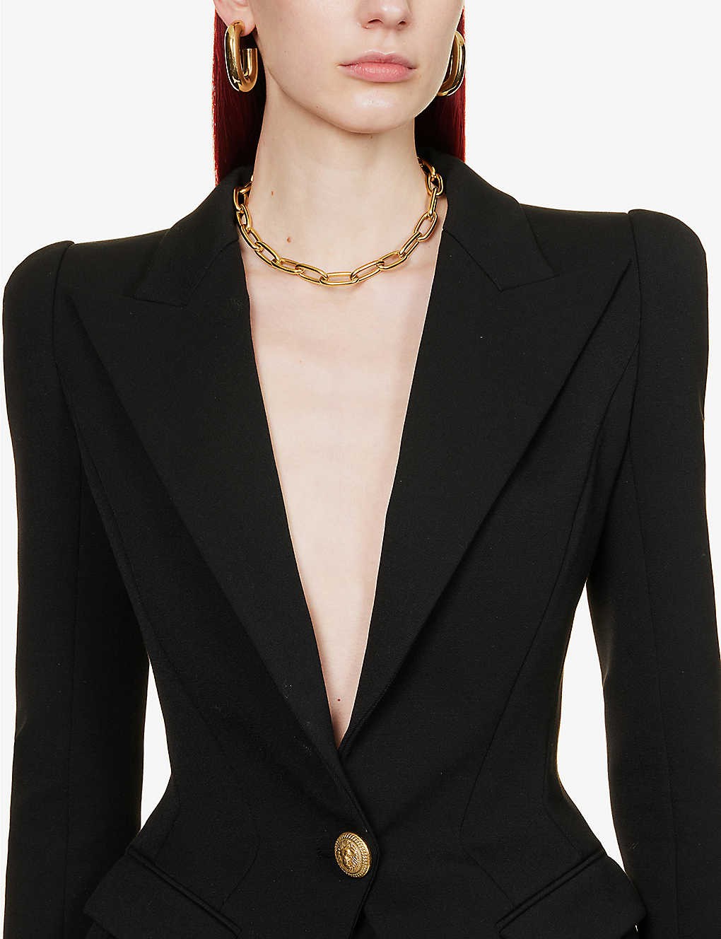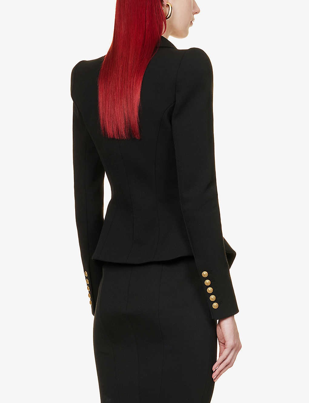This double-breasted padded shoulder slim cotton blend jacket is amazing! The style is fashionable, the padded shoulder design is very elegant, and the cotton blend material is comfortable and textured
