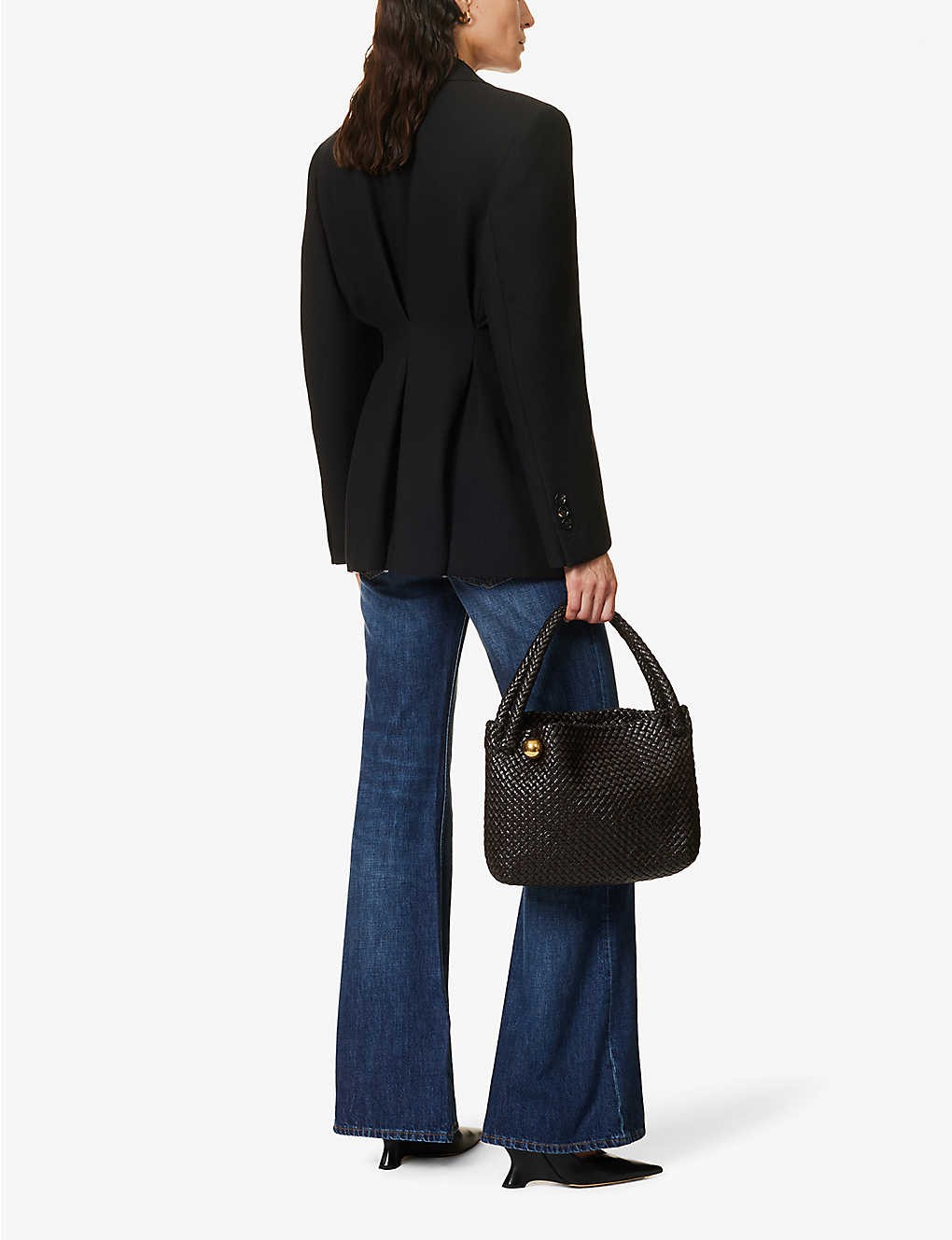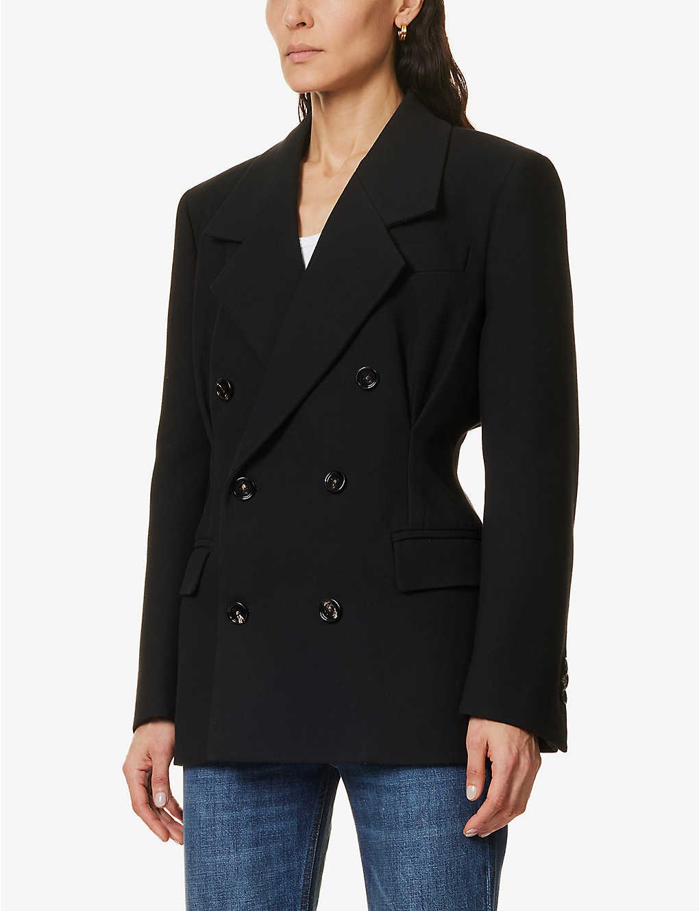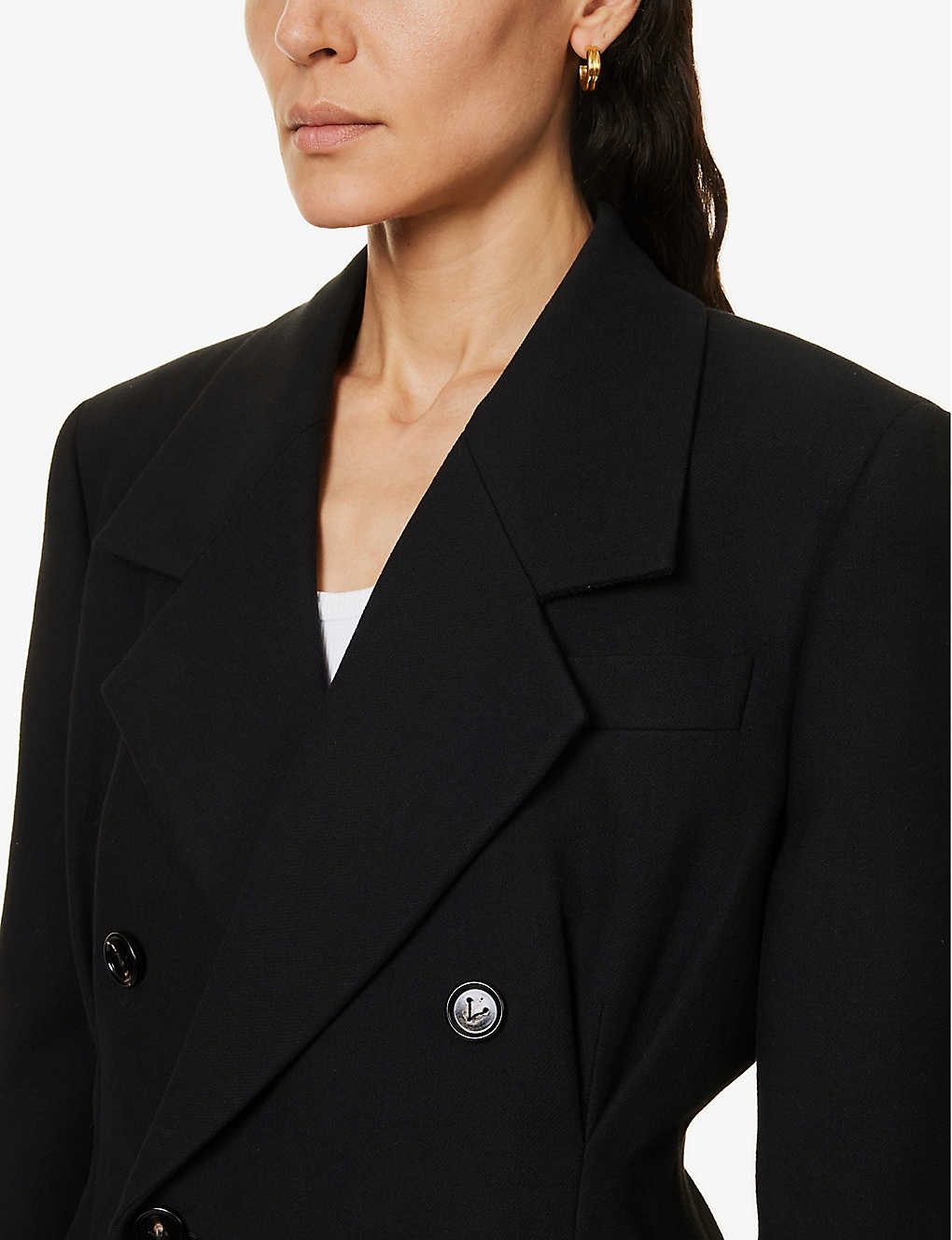 Double-breasted padded-shoulder woven coat