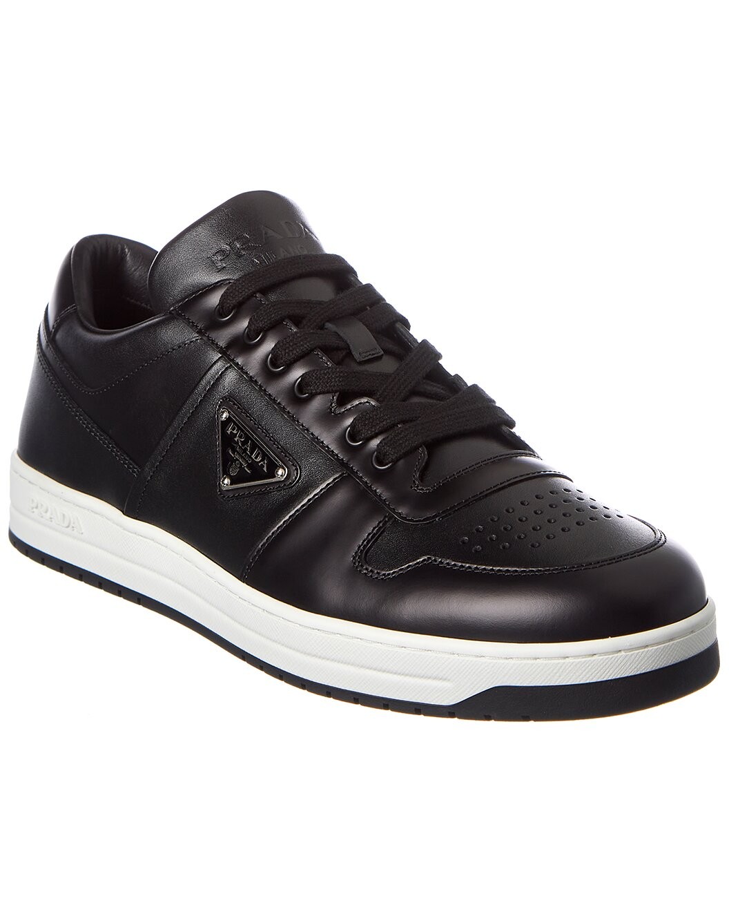 Downtown Leather Sneaker in black leather and steel finish hardware with perforated detailing and logo accent