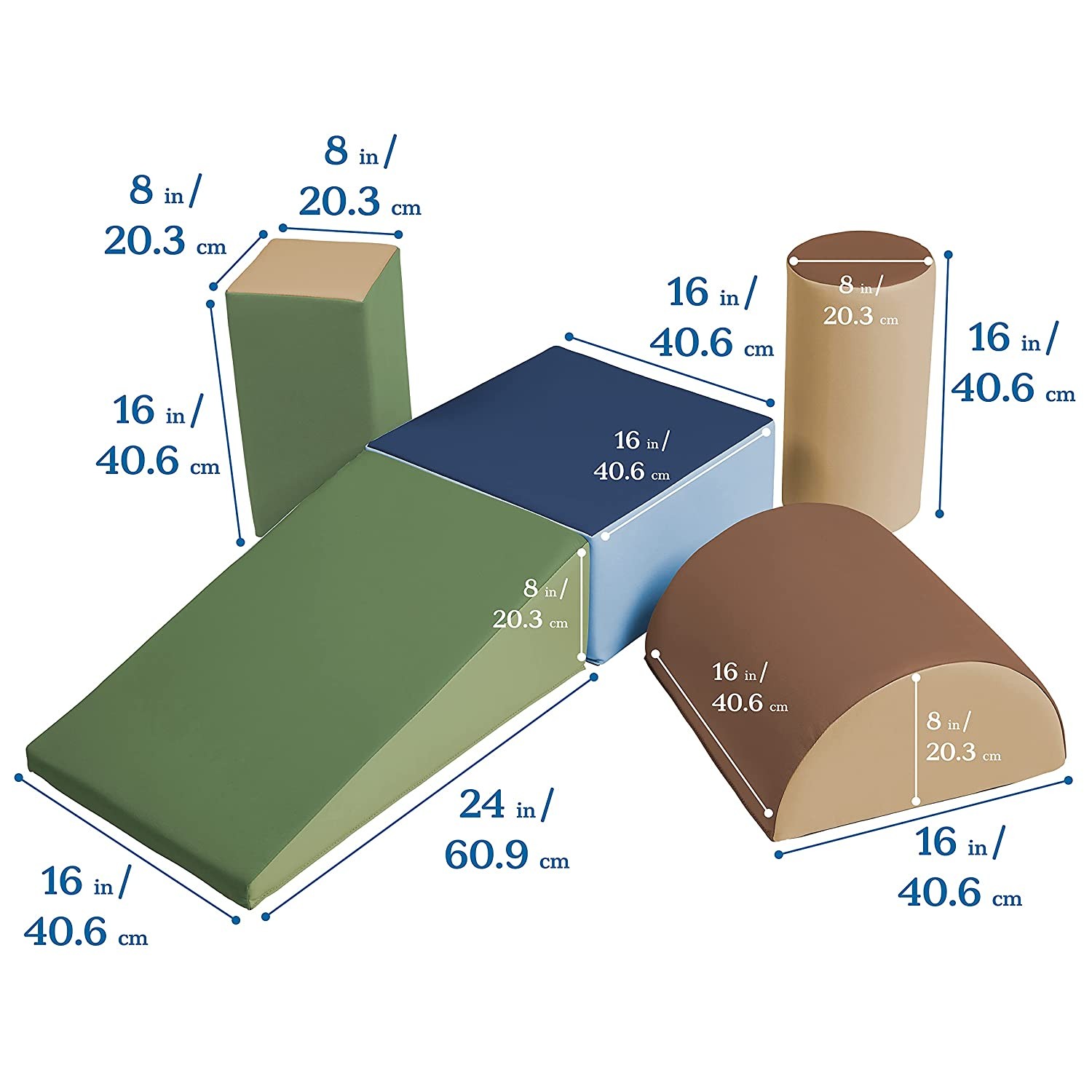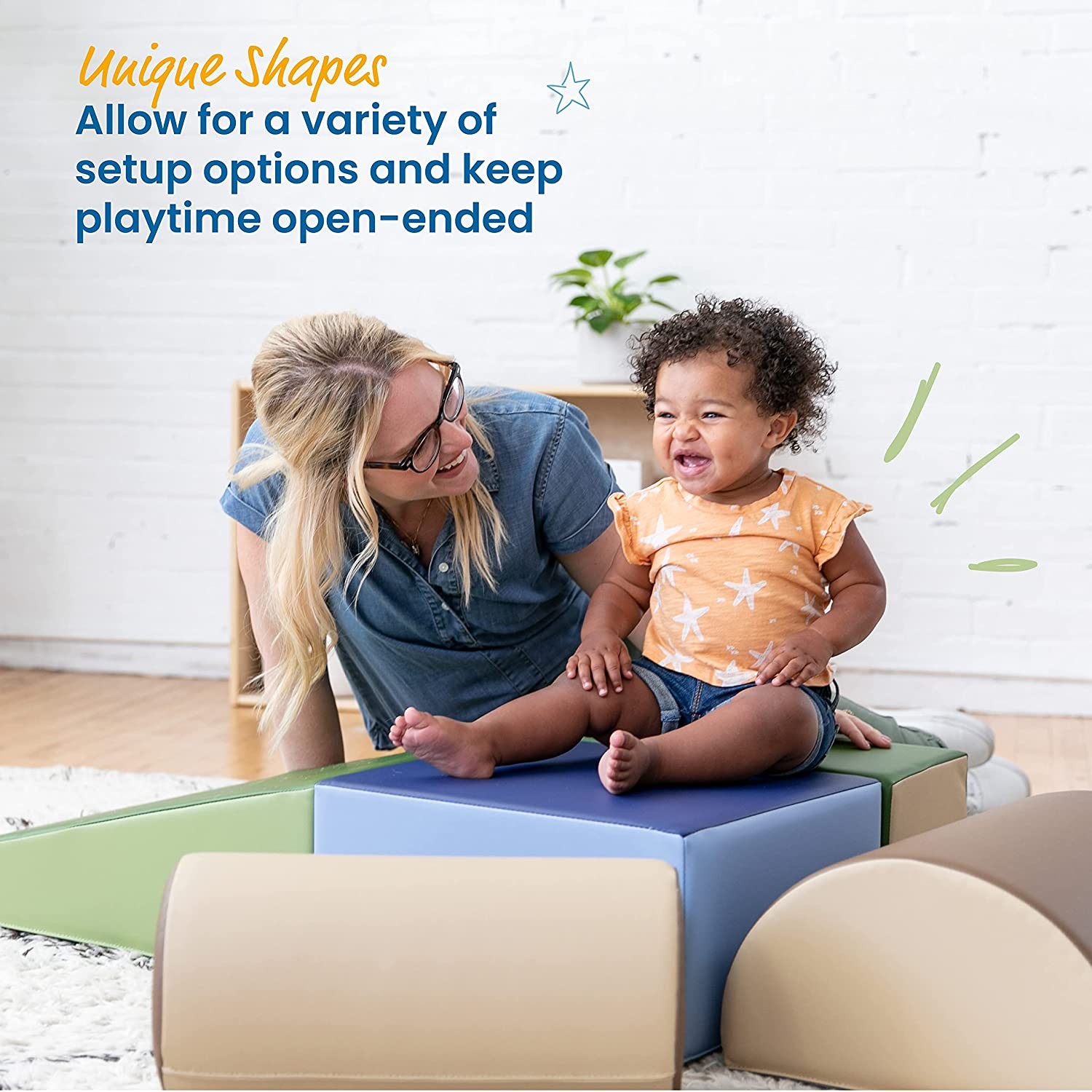 FUN FOAM ACTIVITY PLAY SET: Open-ended play set is designed to let infants and toddlers climb, crawl, and slide on a collection of five foam shapes