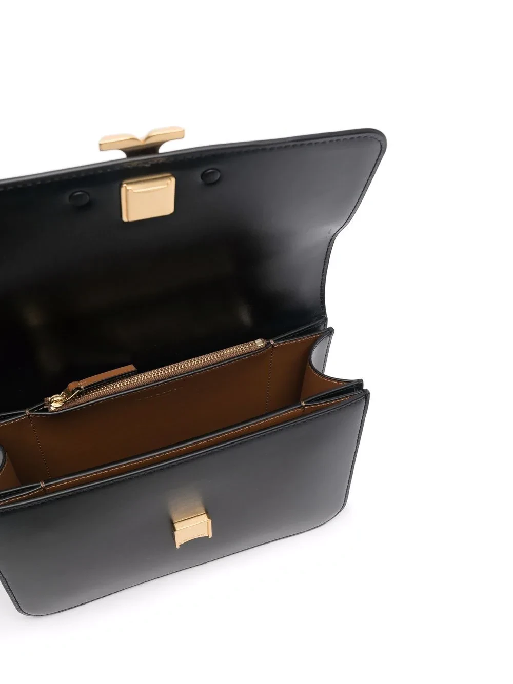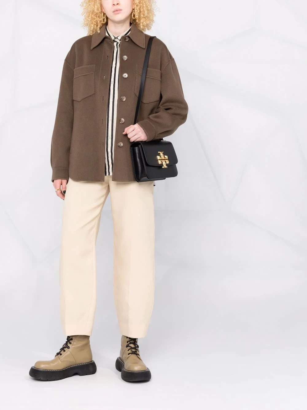 Tory Burch's versatile Eleanor bag that can be worn over the shoulder or across the body with its adjustable twisted rope chain strap, is instantly recognisable with its foldover design with signature gold-tone logo lettering to the front. This season it appears iterated in classic black for a timeless appeal.