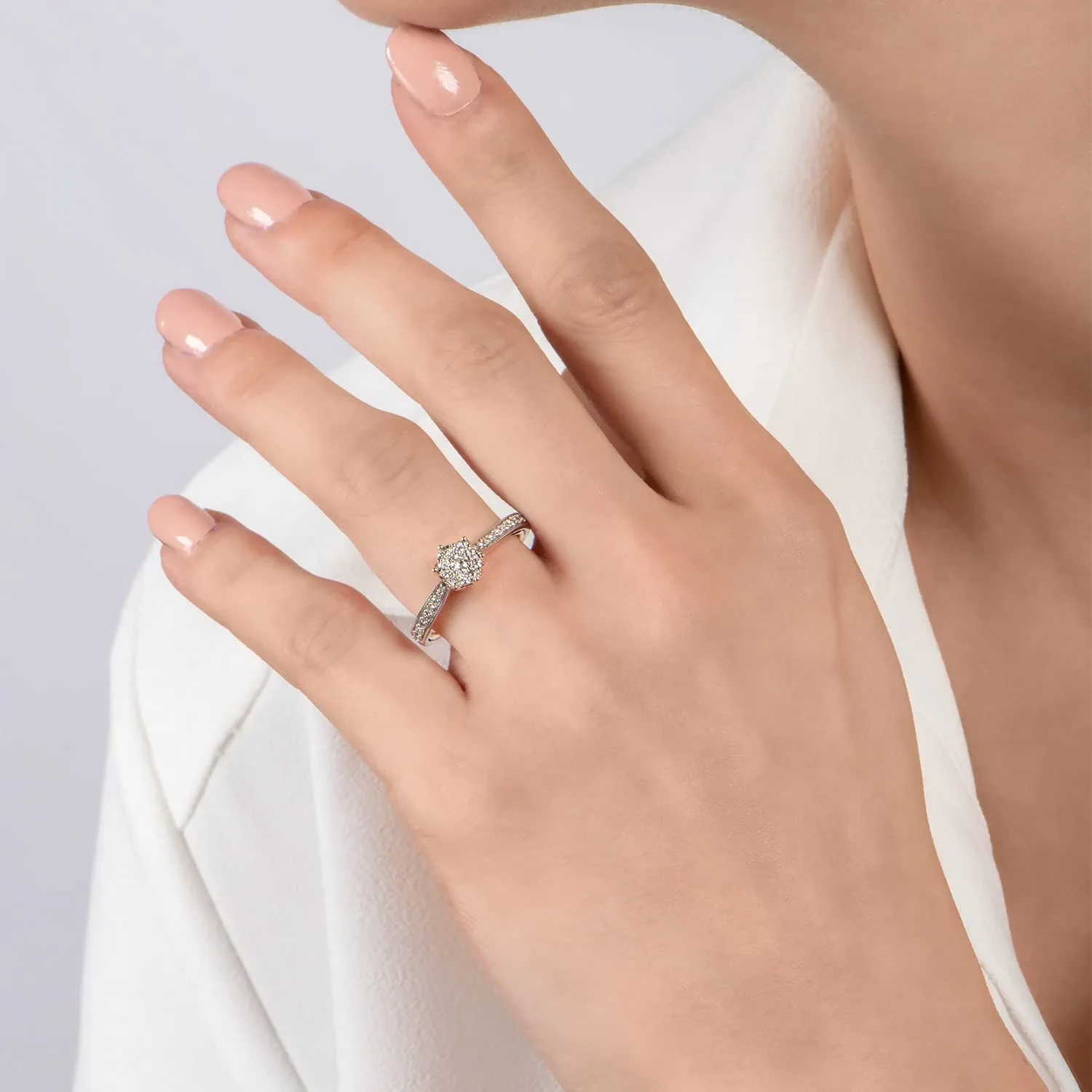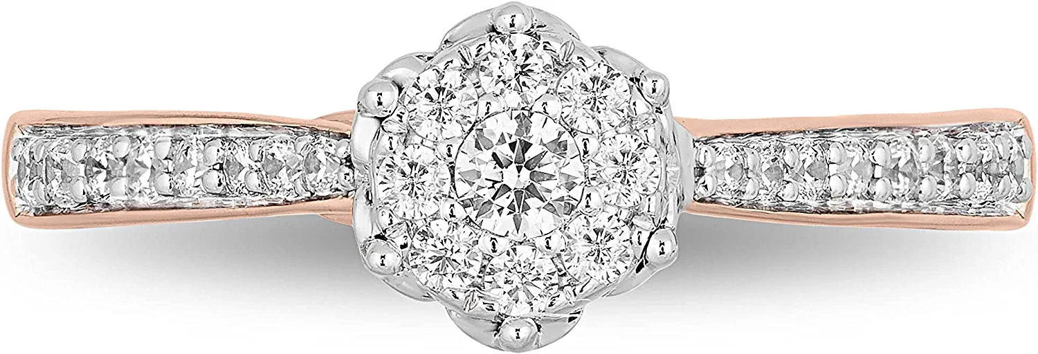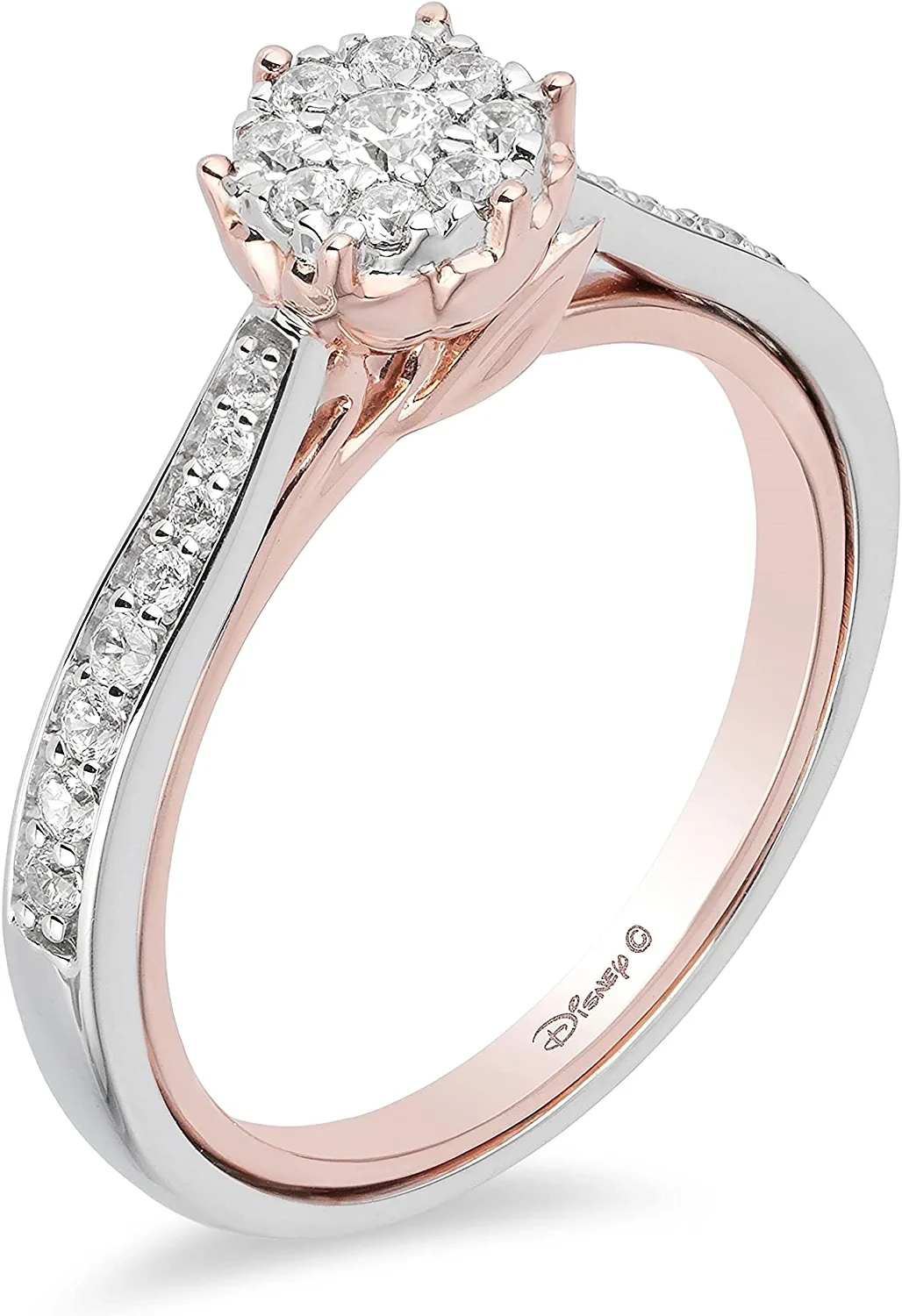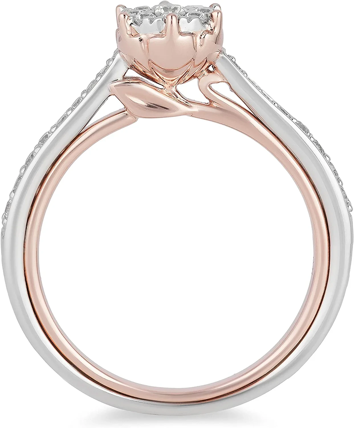 Officially Licensed Disney Jewelry - Enchanted Disney Fine Jewelry Belle Composite Rose Ring in 10K White Gold and Rose Gold 1/3 Cttw Natural White Round Diamond