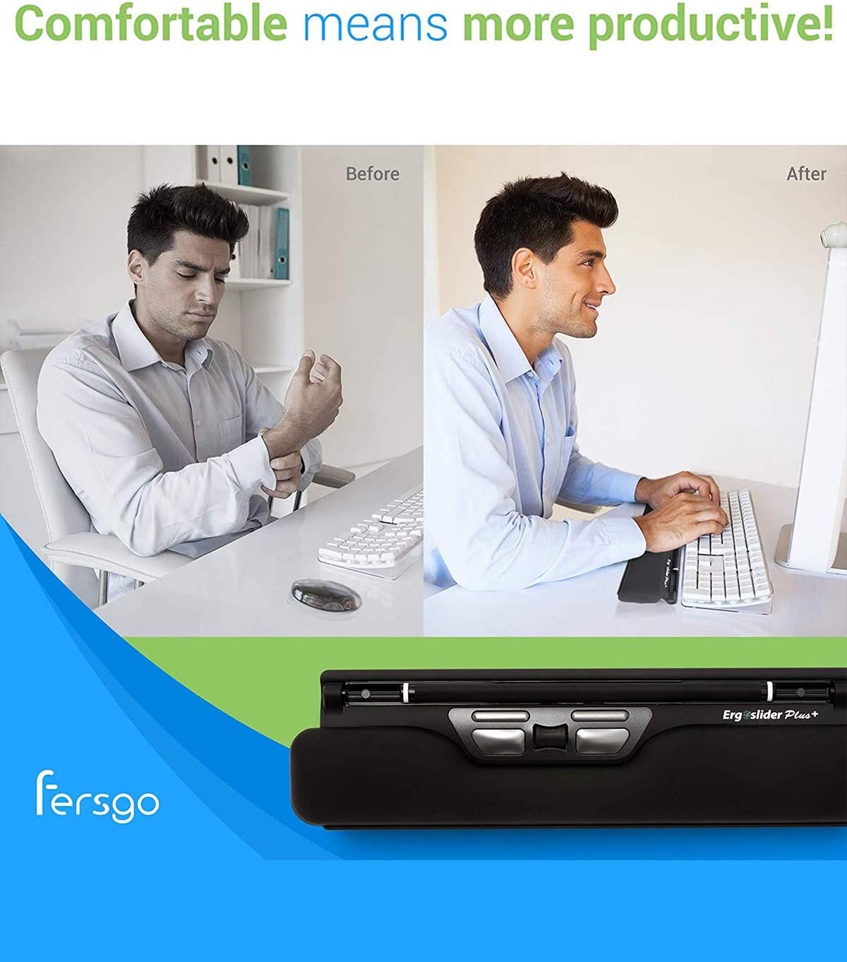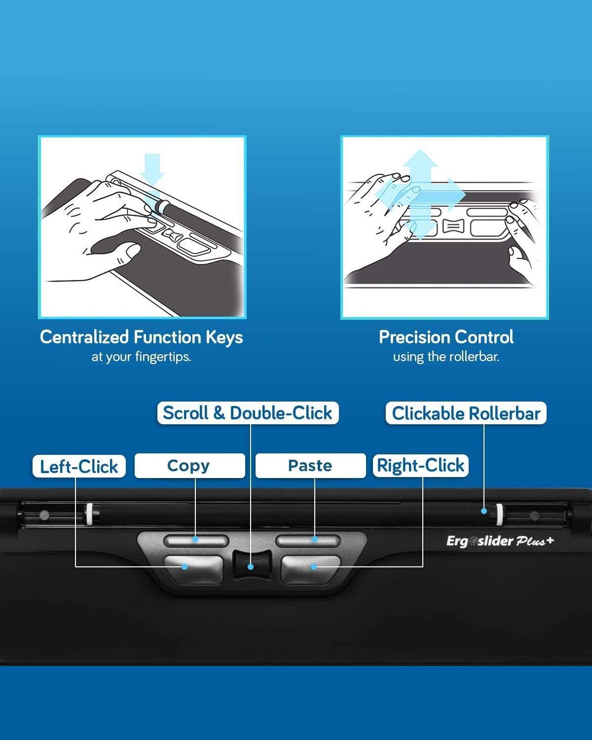 ENGINEERED TO KEEP YOUR HANDS COMFORTABLE DURING WORK HOURS - Most desk jobs require you to move your hand from your mouse to your keyboard, resulting in erratic movements that cause strain on your wrist and shoulders. The Ergoslider Plus prevents that with its unique ergo design that prevents your hands from reaching left and right for a mouse. Everything you need to navigate your computer is right in front of you.