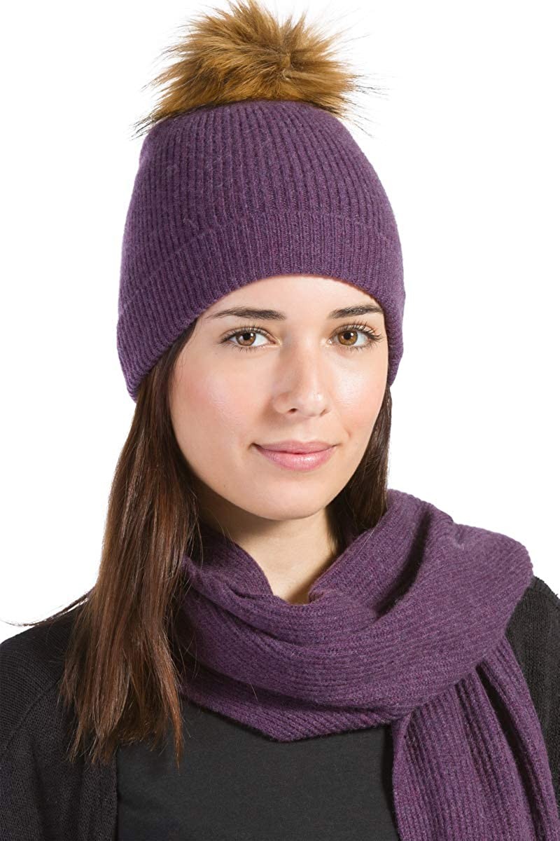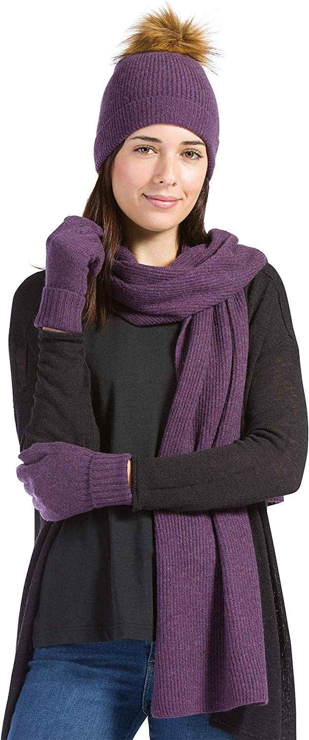 SOFTEST CASHMERE: Our pom beanie hat scarf glove set is made from 100% pure, grade A cashmere. Our cashmere is pill resistant, durable and made from 2 ply yarn. This winter beanie for women has a faux fur pom.