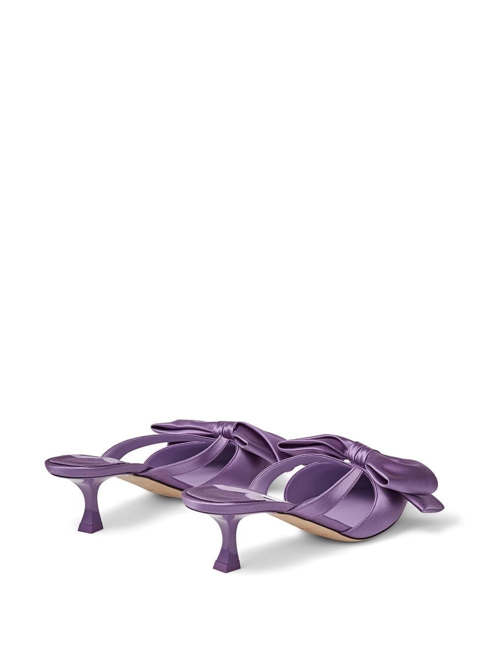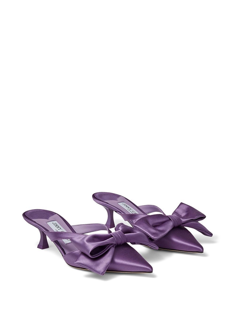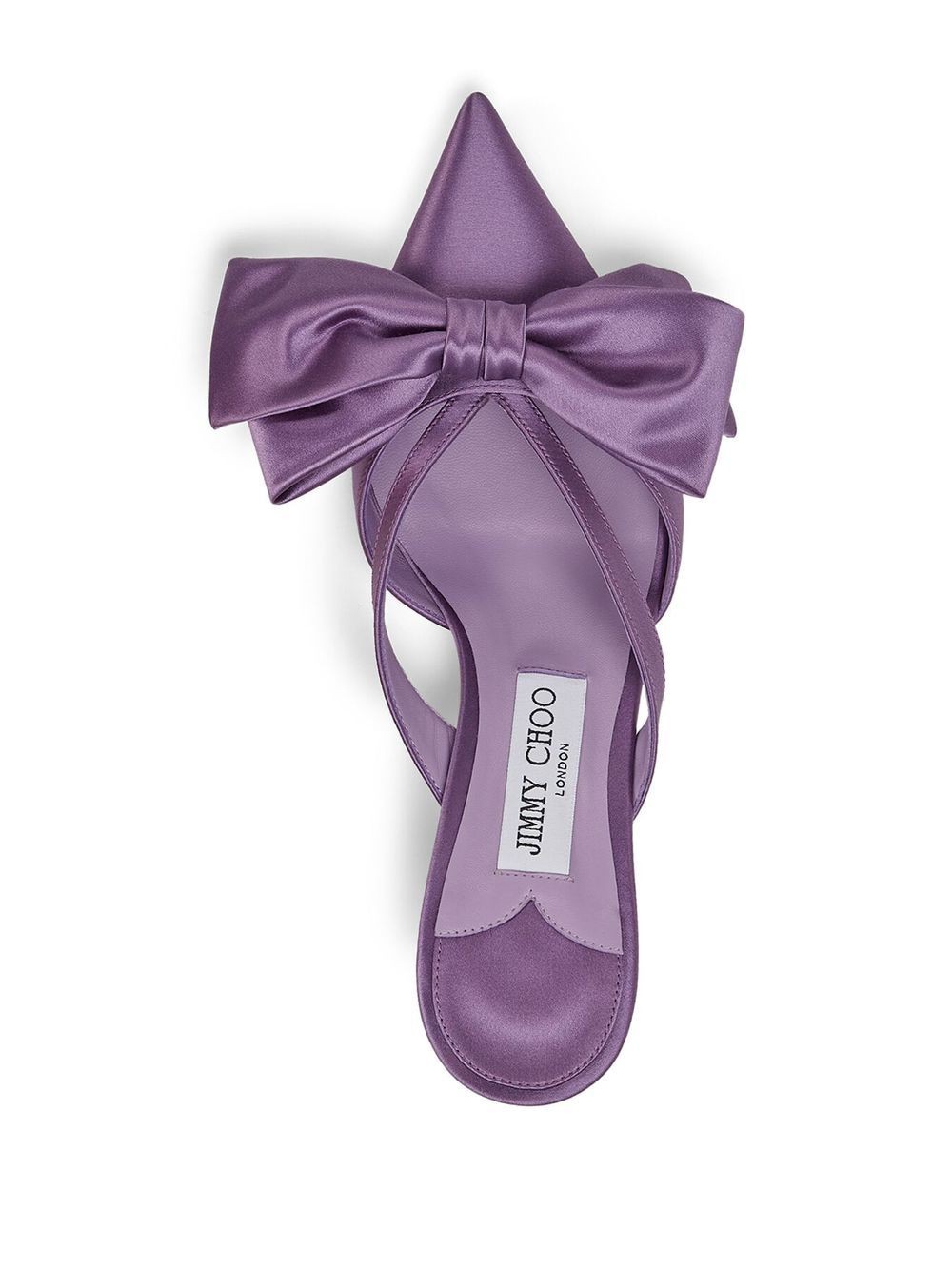 Made in Italy from smooth leather and covered in delicate satin for a whimsical look, this purple iteration of Jimmy Choo's Flaca mules sit atop a mid-heel whilst boasting a bow applique over its pointed toe.