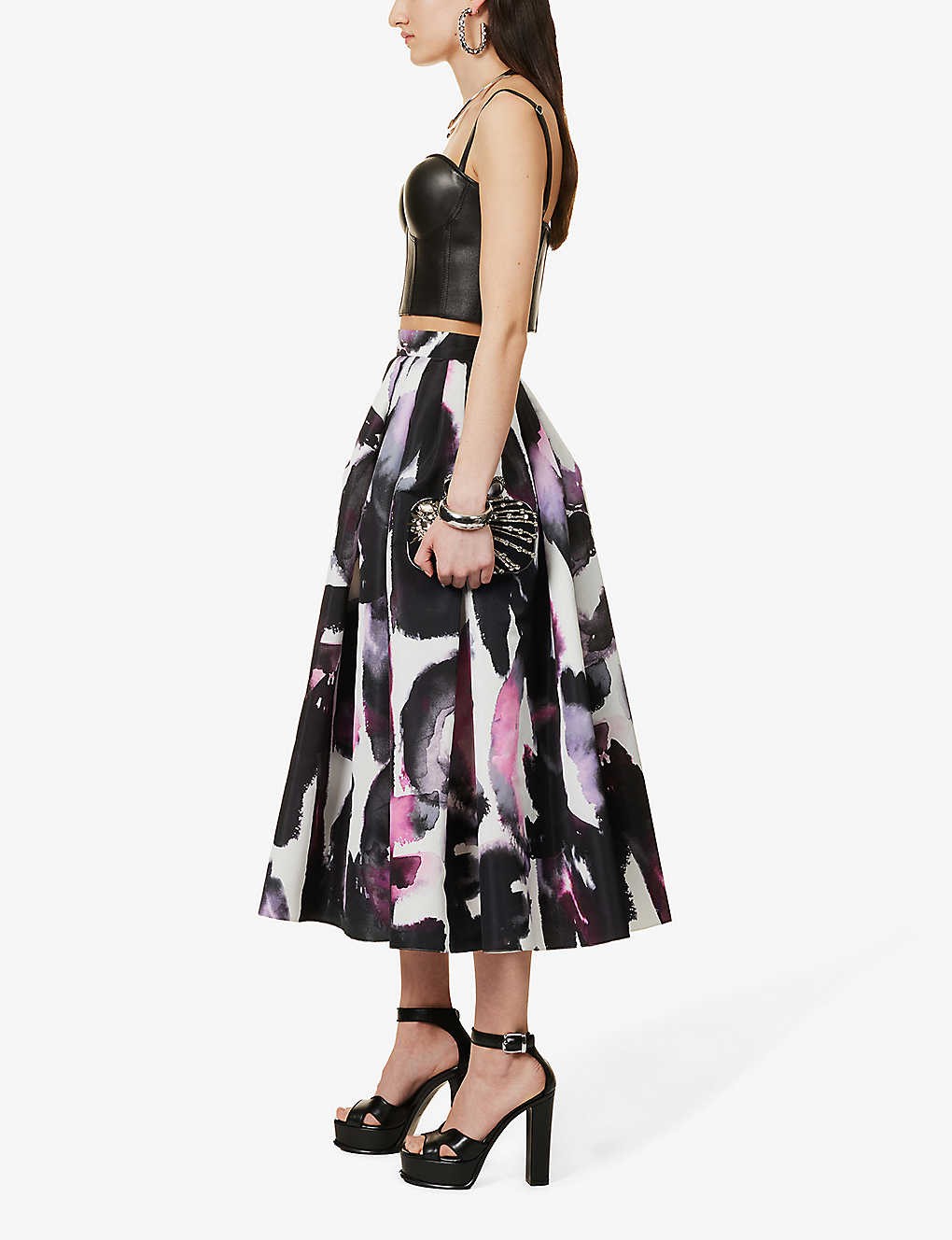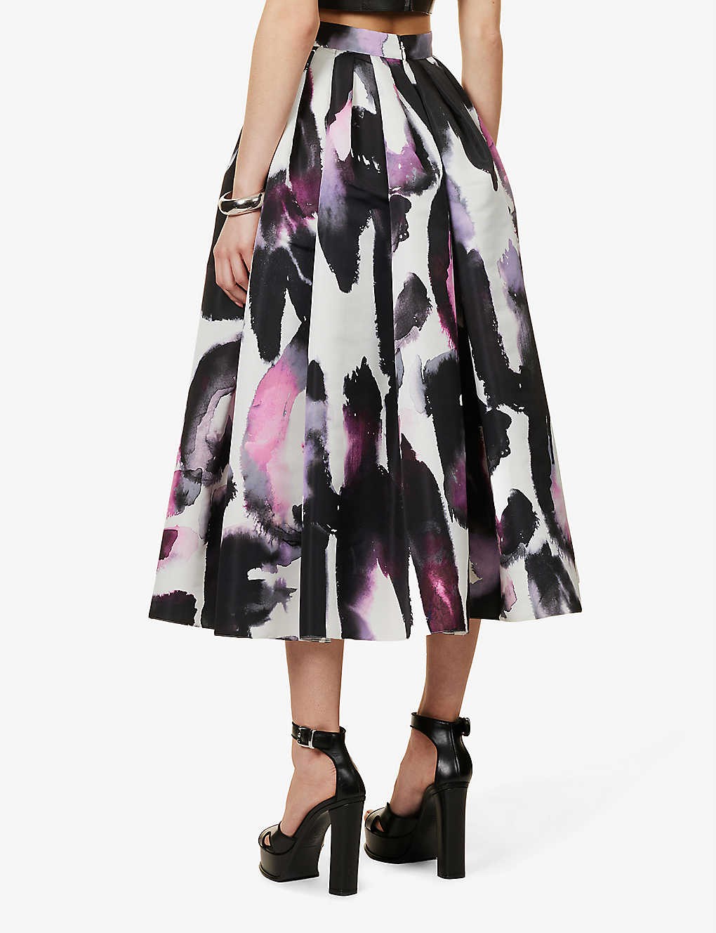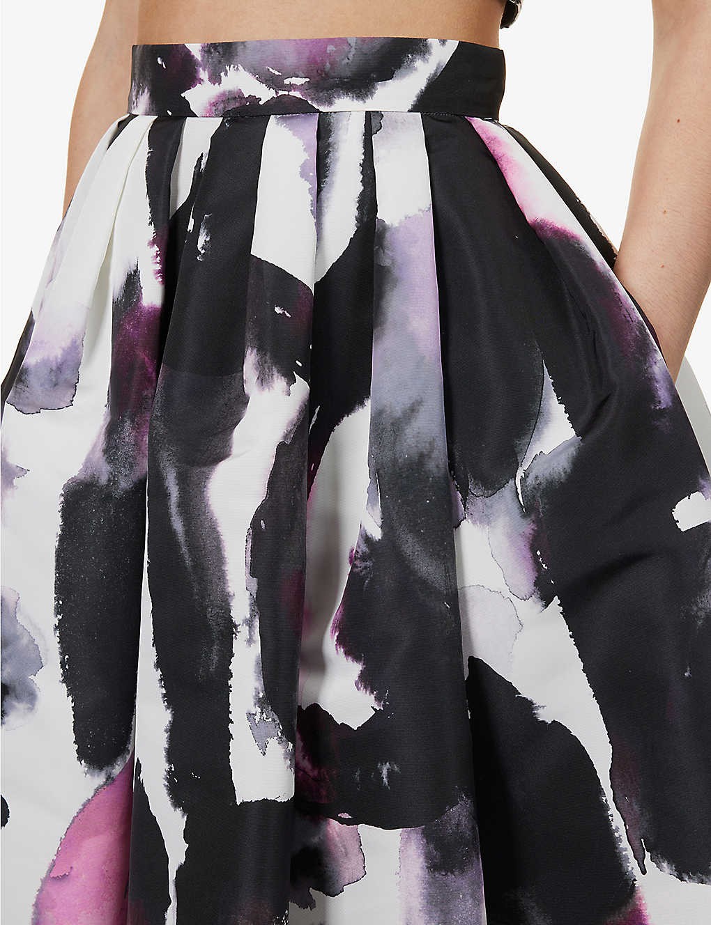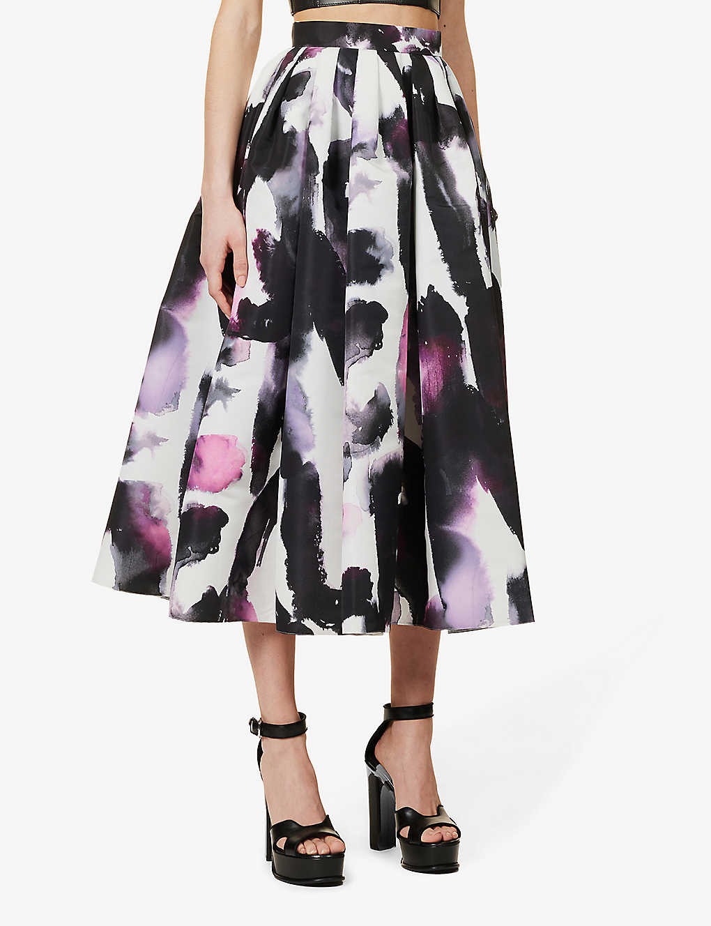 Floral-print flared-hem woven midi skirt