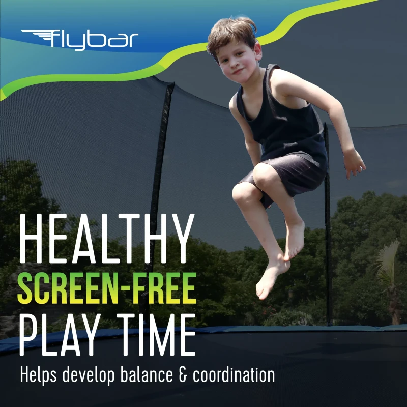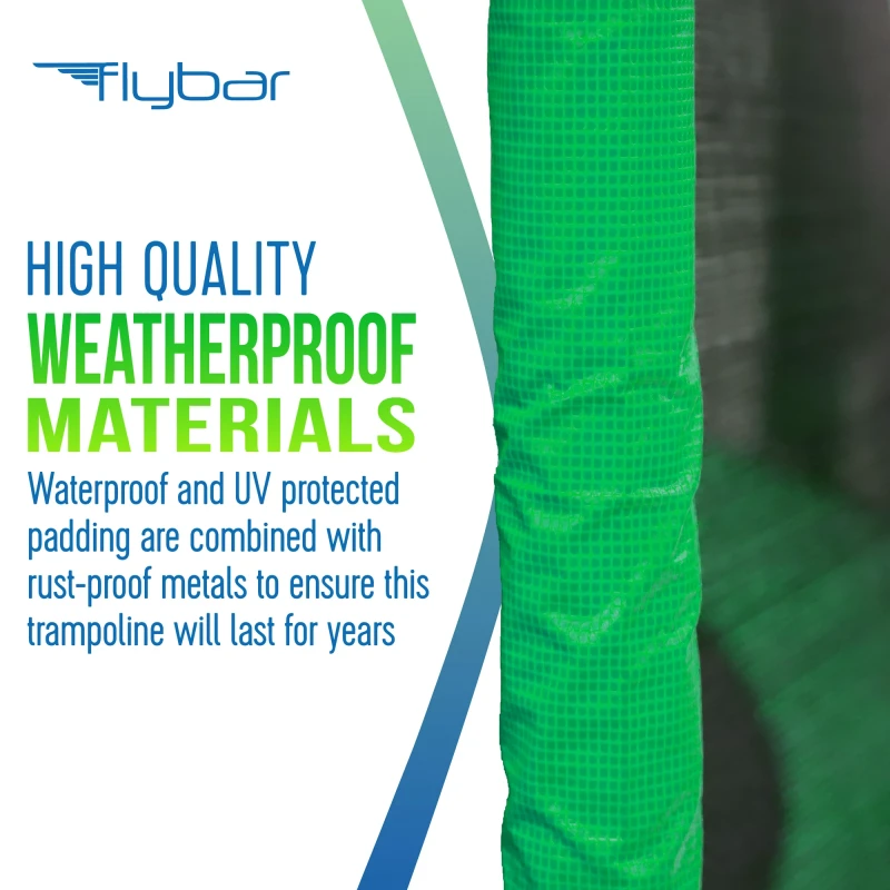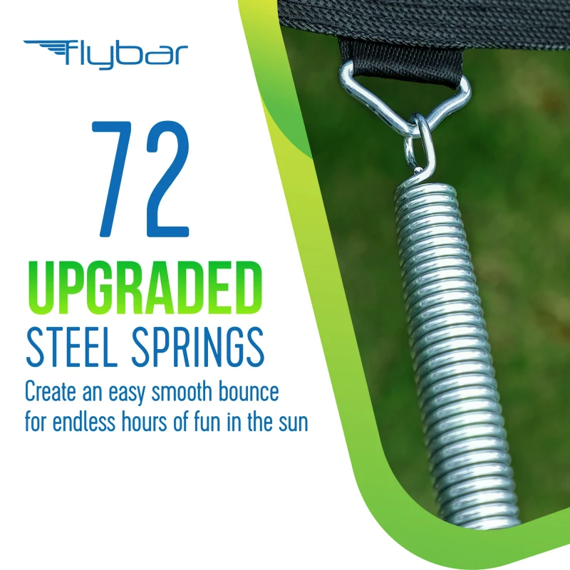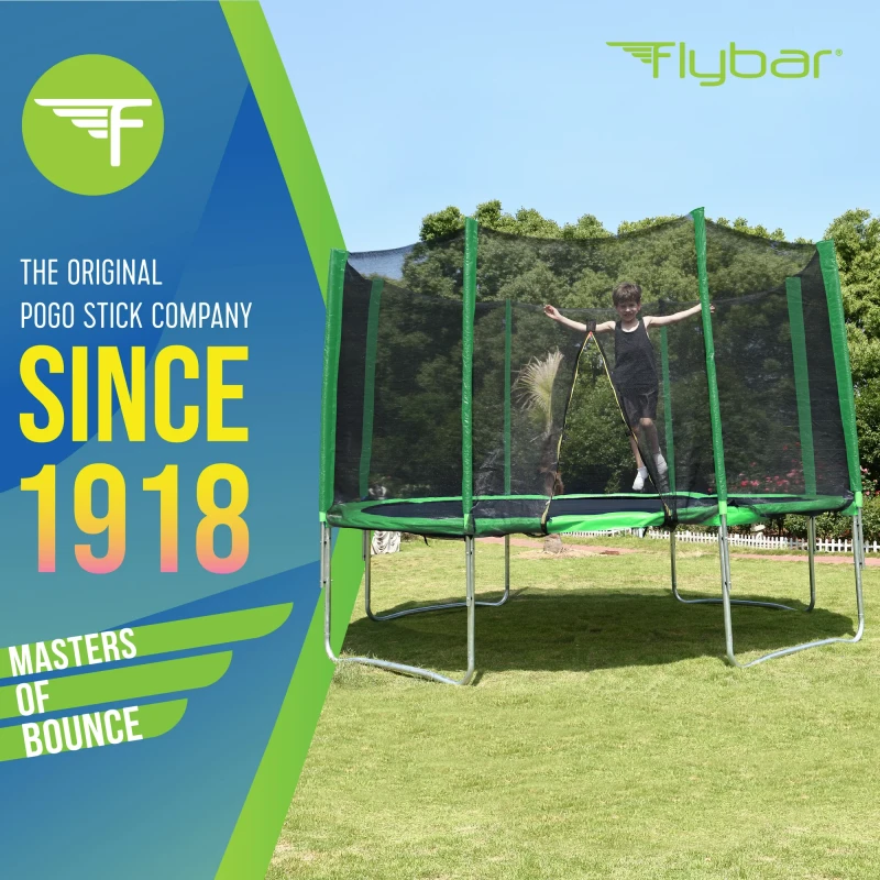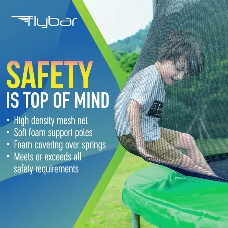 15' Flybar Trampoline Simple Installation, Steel Frame, No Bolts Required, Safety Enclosure Net, Heavy-Duty Round for Indoor or Outdoor Backyard, Green