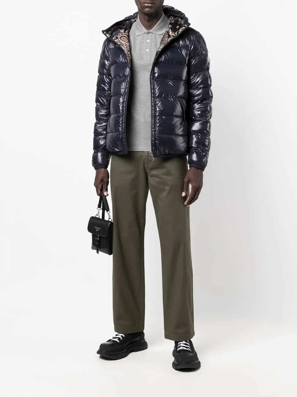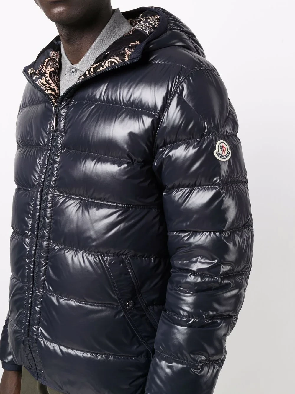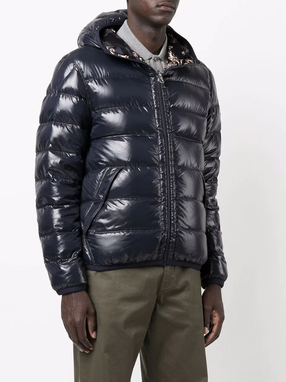 Known for their padded down jackets, Italian fashion house Moncler was founded in 1952 and started life creating quilted sleeping bags and tents. Boasting a reversible silhouette, this Freville padded jacket allows the wearer to choose between a paisley print or high-shine blue outer.