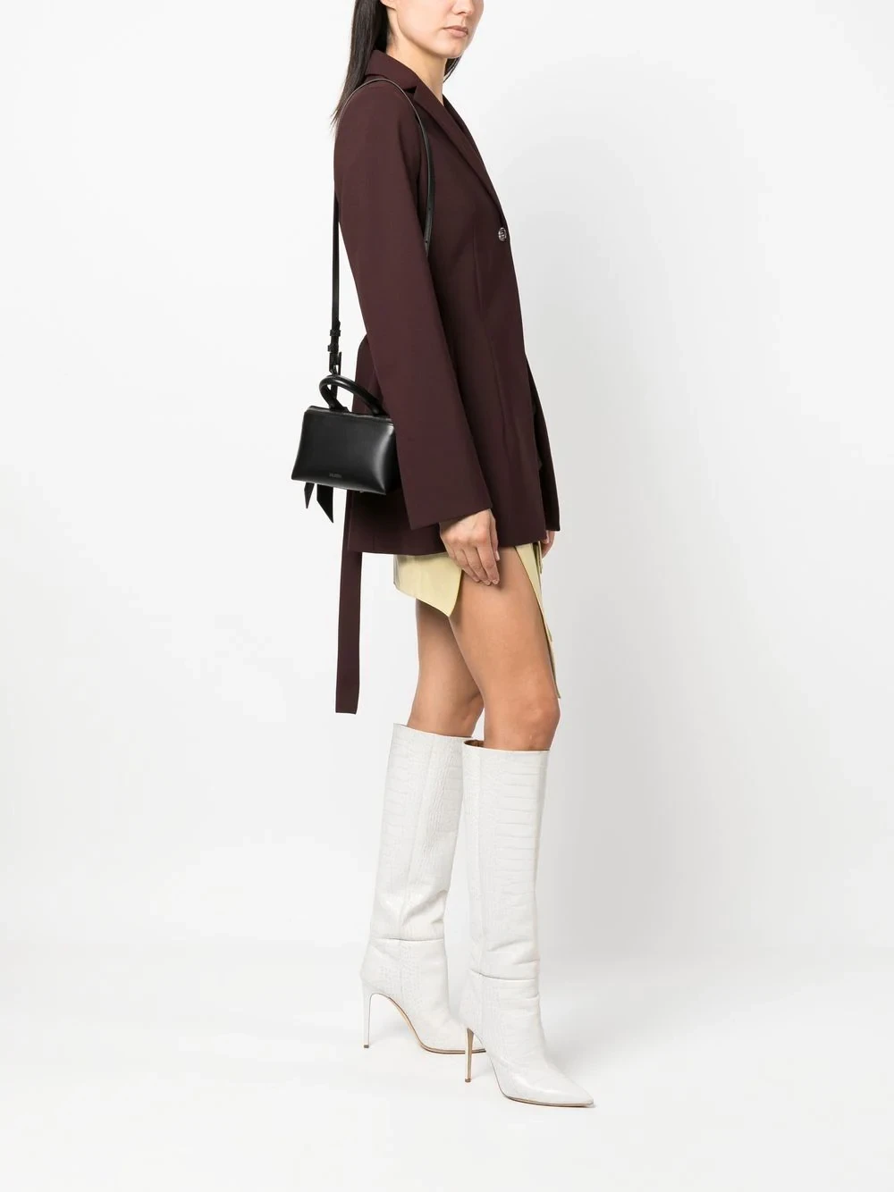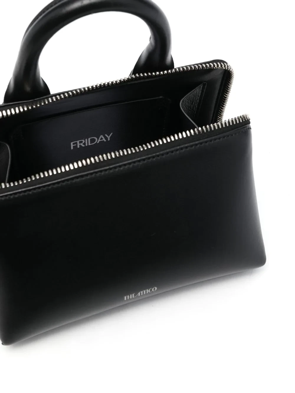 The Attico's Friday tote bag is designed with an eye-catching geometric silhouette that is a play on the brand's trademark triangular motif. Crafted in Italy from black calf leather, it is detailed with a single round top handle and a detachable and adjustable shoulder strap.