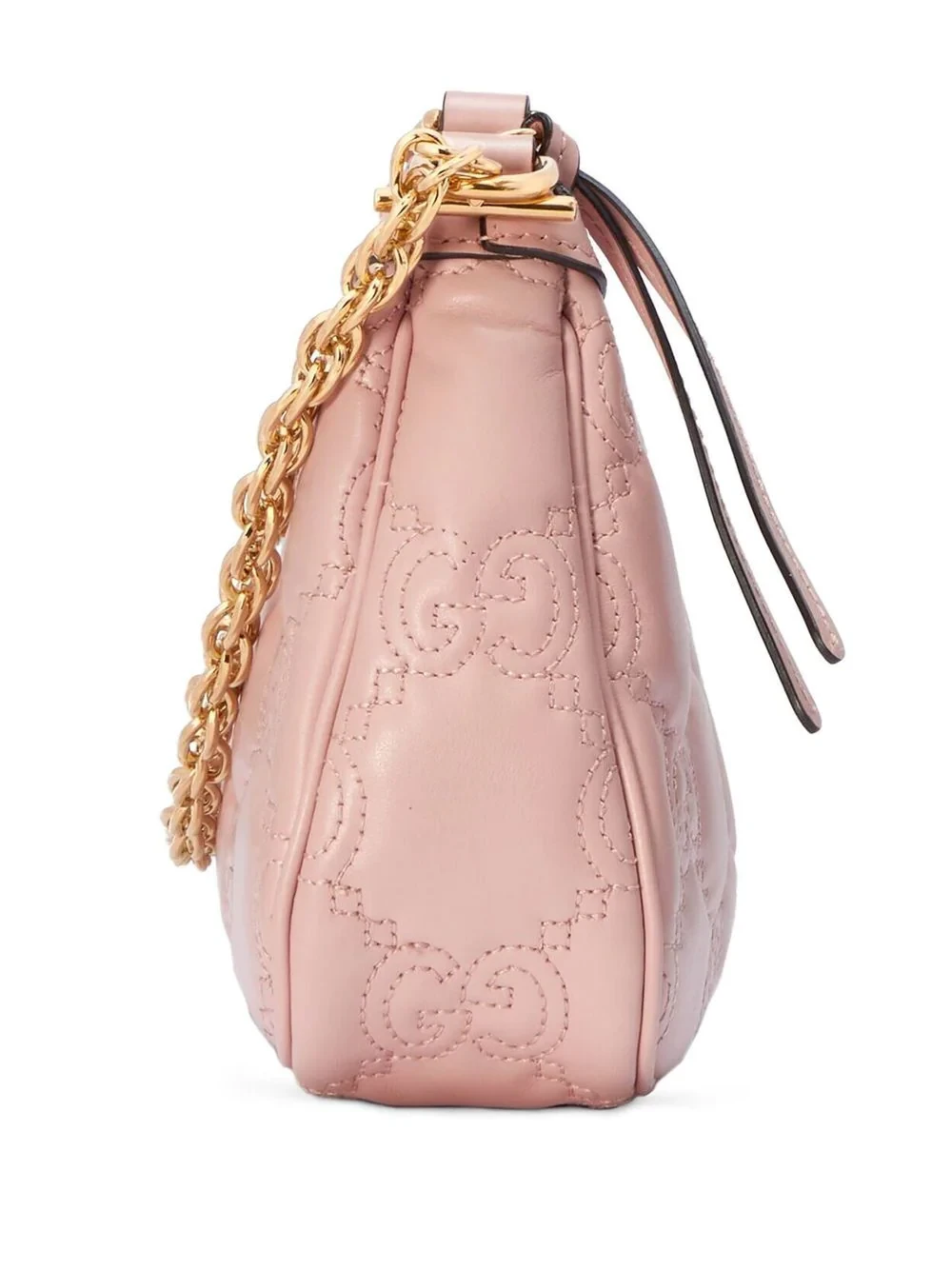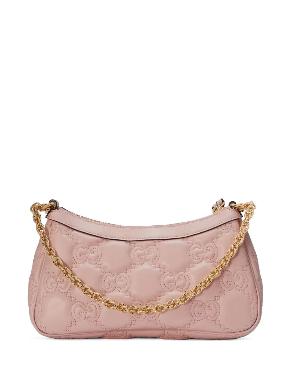 Crafted from super soft matelassé leather, this shoulder bag from Gucci boasts the House's signature GG monogram pattern embossed all over. The rose-pink piece is finished with the iconic double G logo to the front in polished gold-tone hardware, continuing the logo feel of the design.