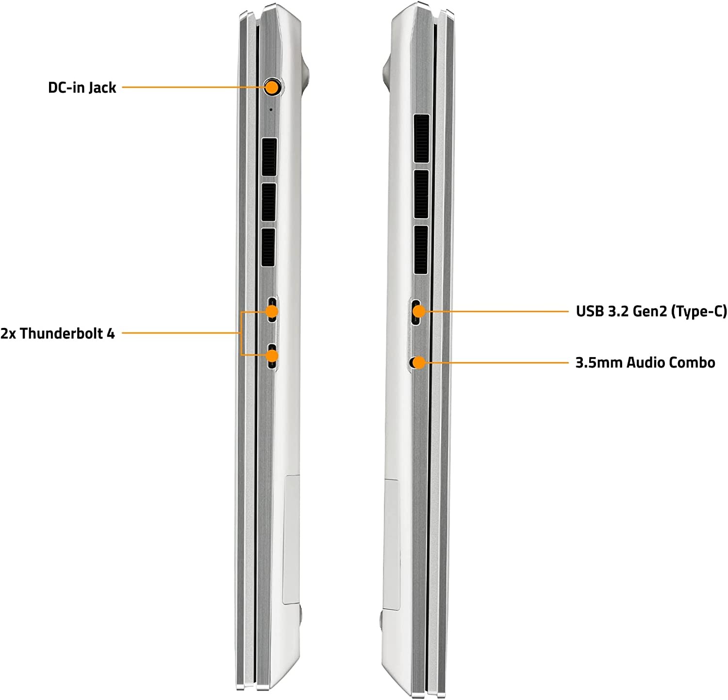 I/O: 2x Thunderbolt 4, 1x USB 3.2 Gen2 (Type-C), 1x 3.5mm Audio Combo Jack, 1x DC-in Jack